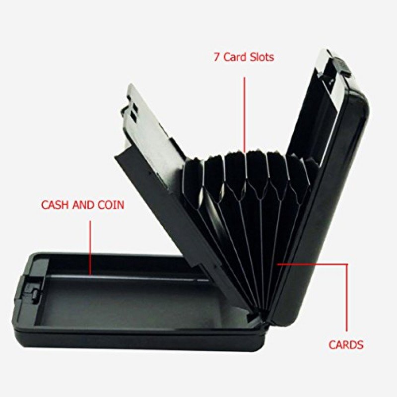 - Using High quality aluminum materials from top manufacturer. 7 Slots. Capacity for up to 8 or more credit cards, and the other side could hold up 2 cards, coins and cash.