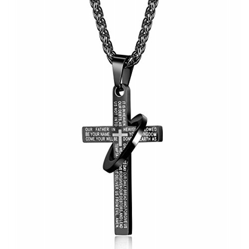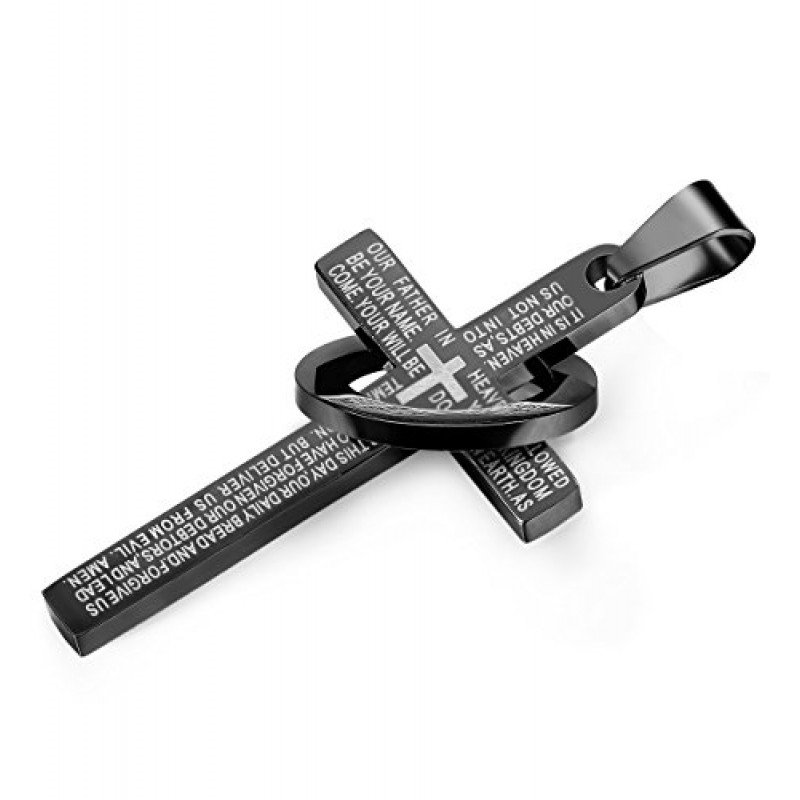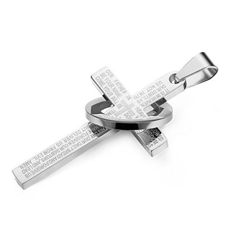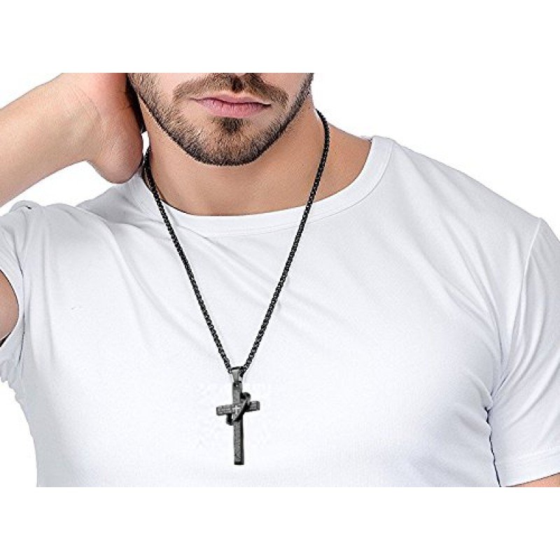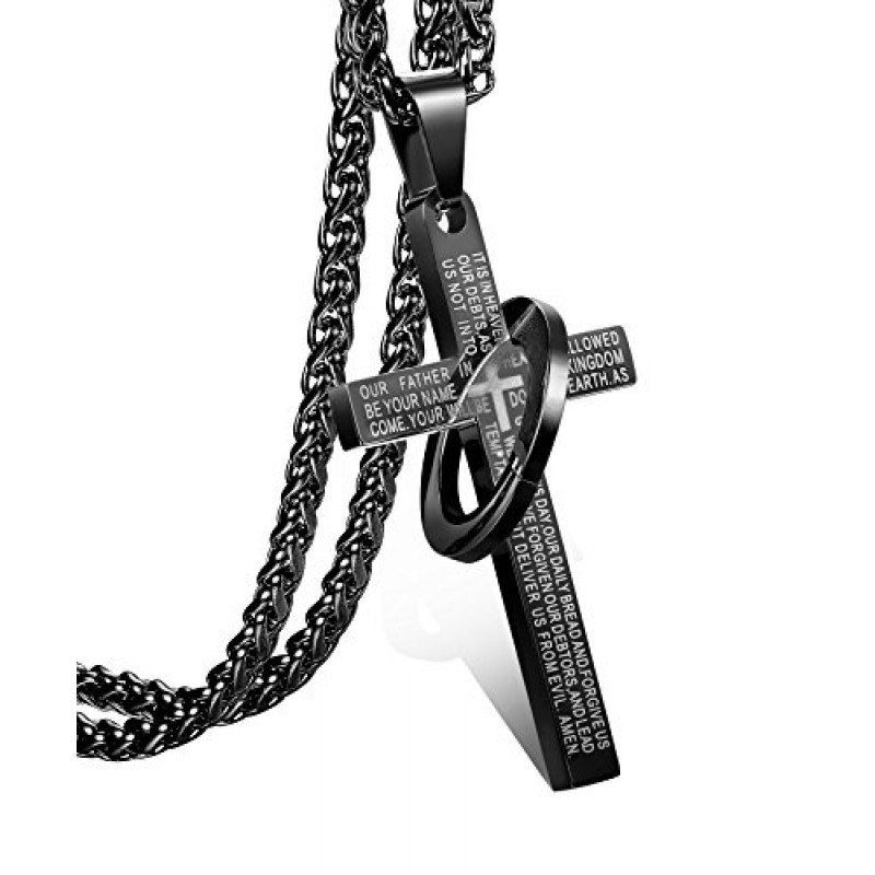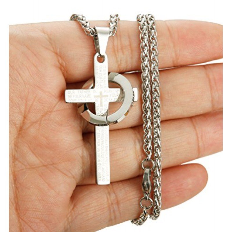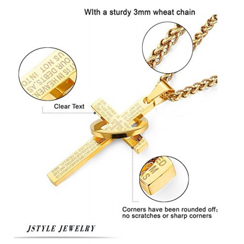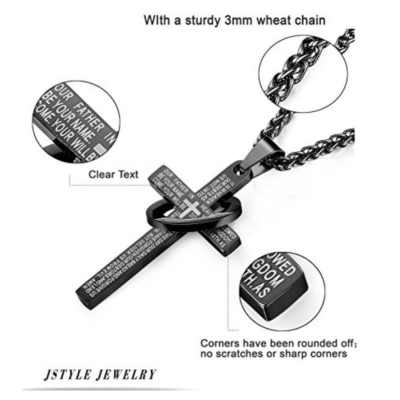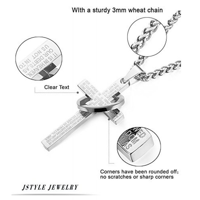 Jstyle Stainless Steel Cross Necklaces for Men Women Jesus Cross Necklace Chain Prayer Bible English Wheat Chain 22 Inch