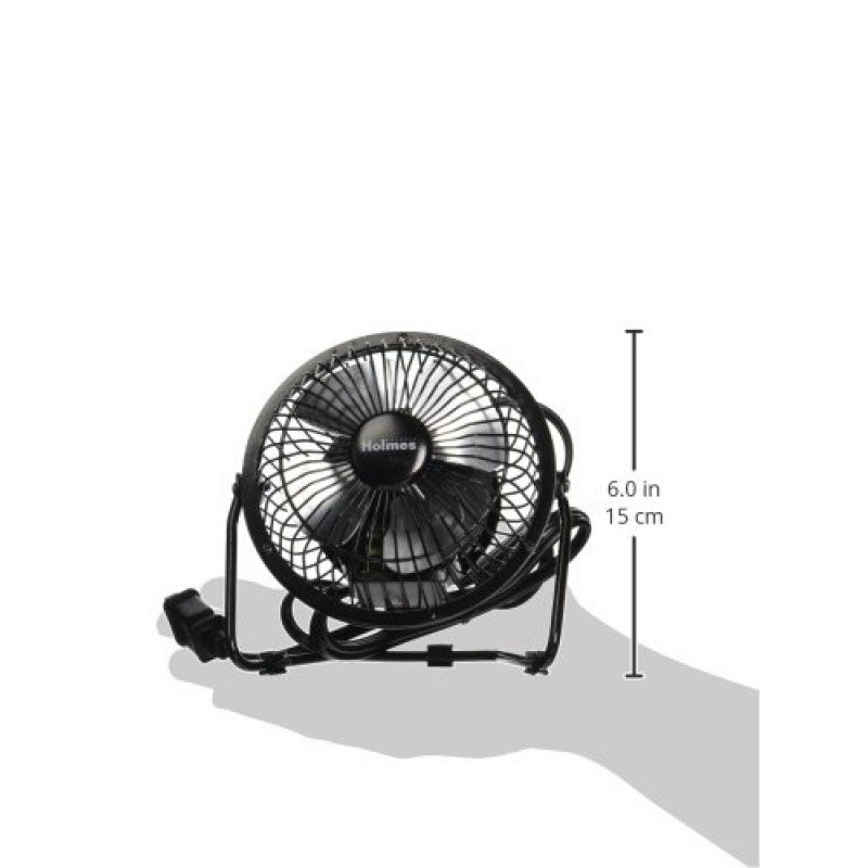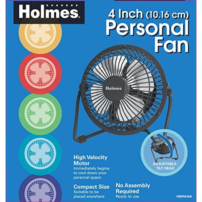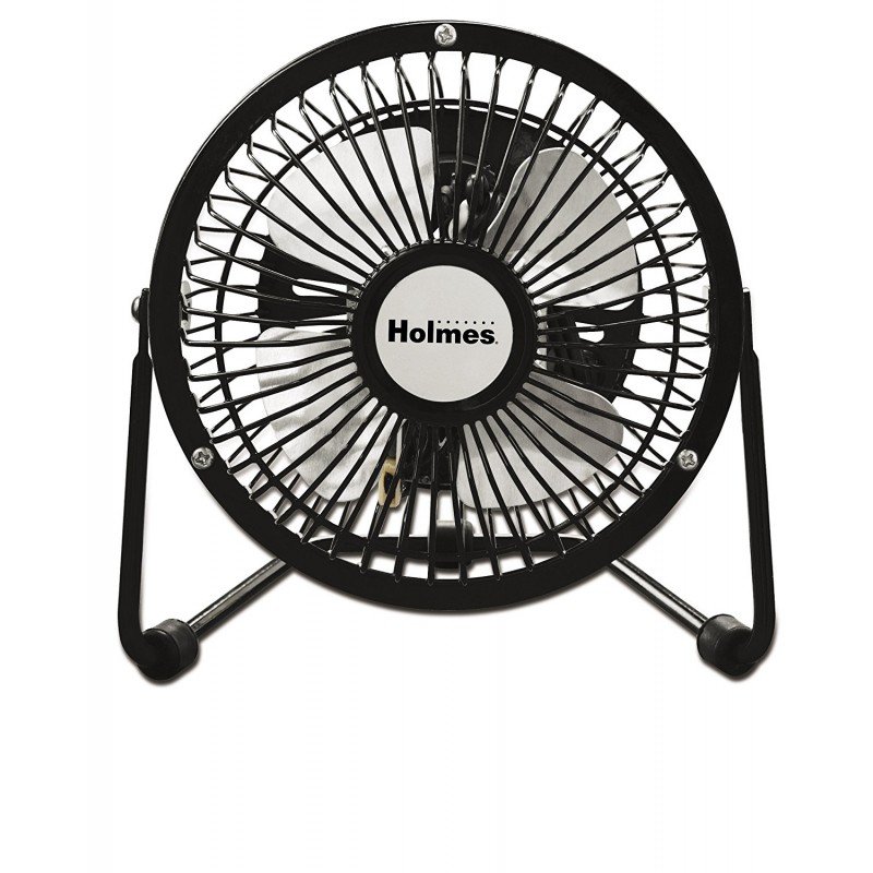 The Holmes HNF0410A-BM Mini High Velocity Personal Fan is ideal for personal space cooling. This design has a metal 4? blade. Perfect for use on a table or desk in the office or home.