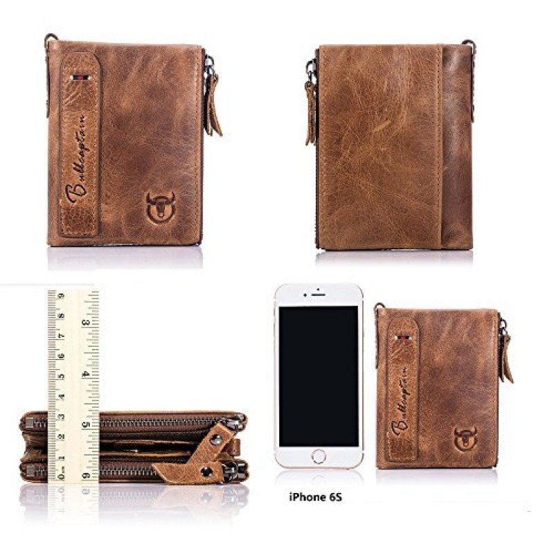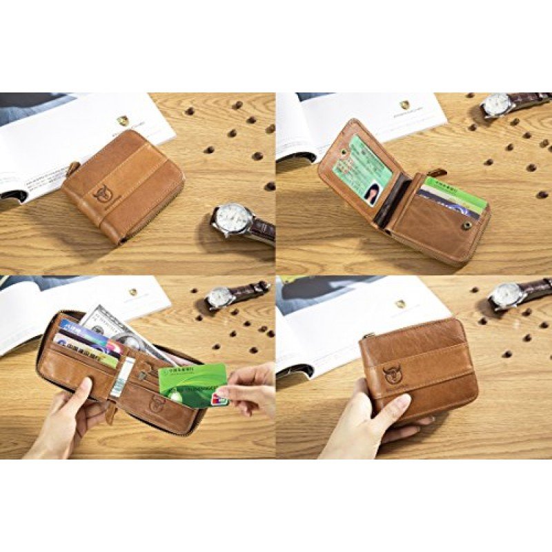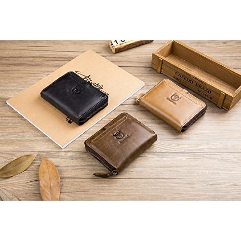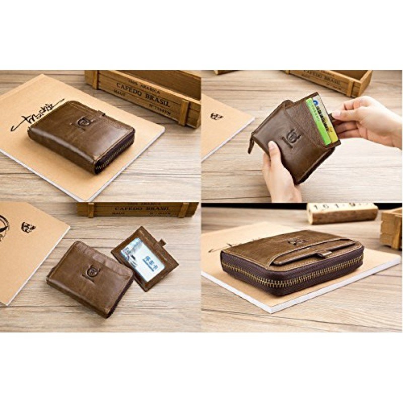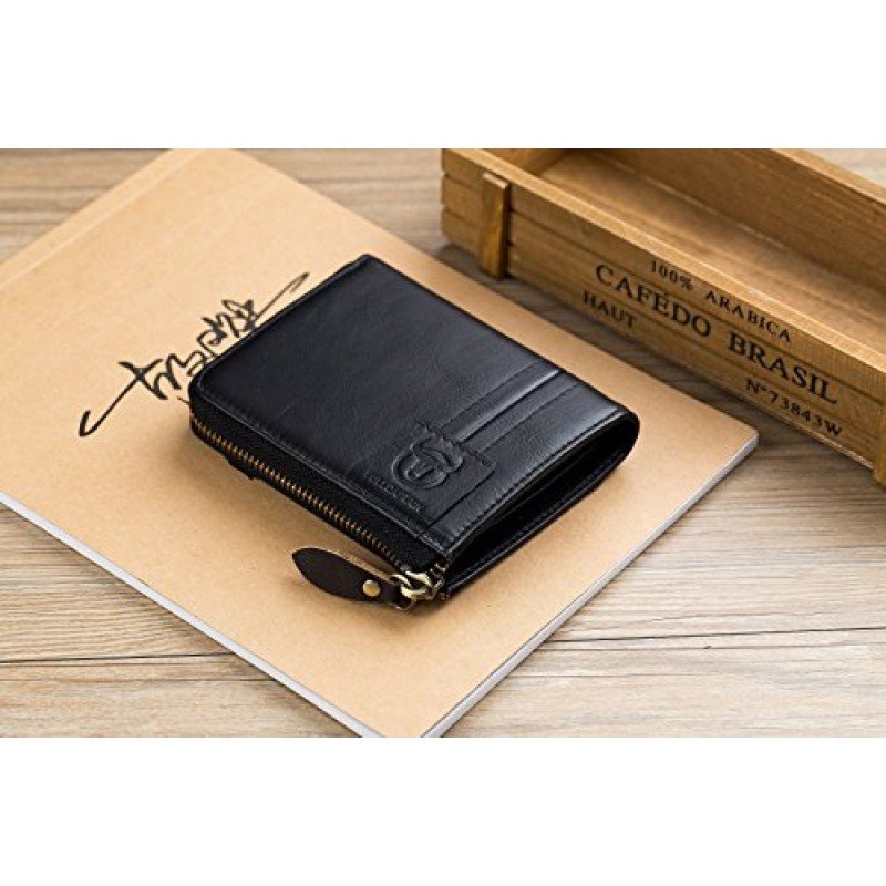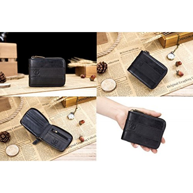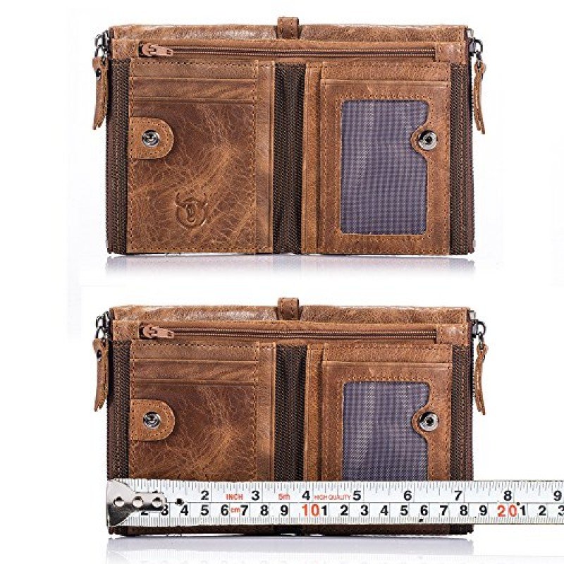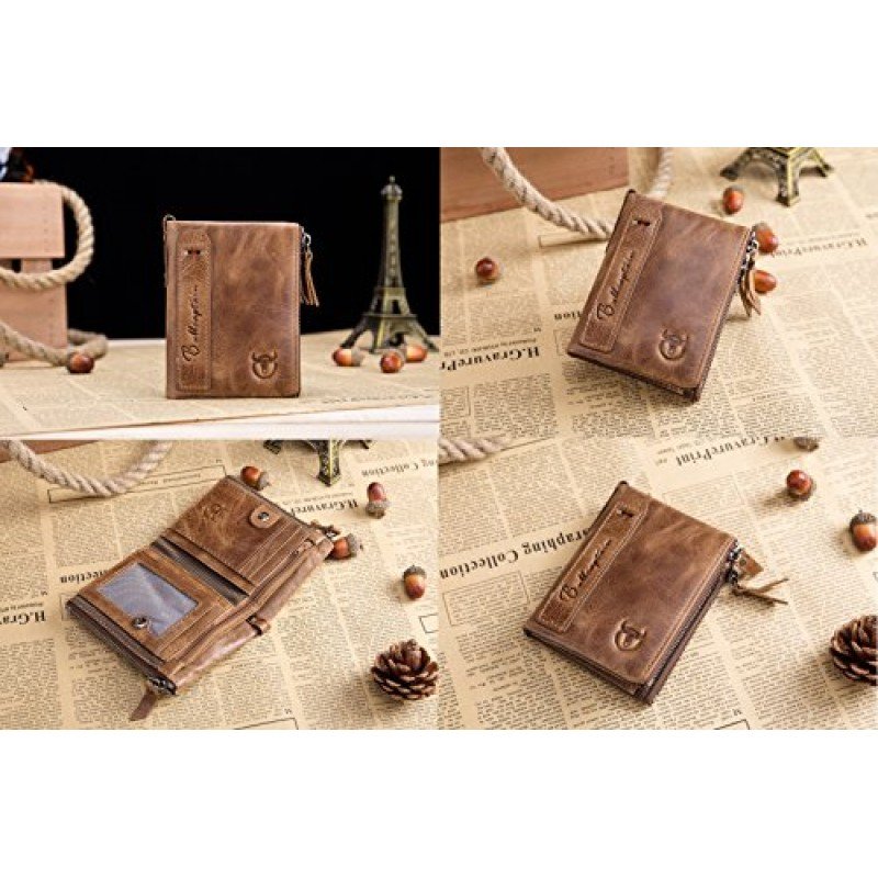 • MEN?S GENUINE LEATHER WALLET: 100% genuine hand-crafted vintage cowhide leather, wrinkle free, soft and comfortable. The lining was made of polyester, smooth and durable.