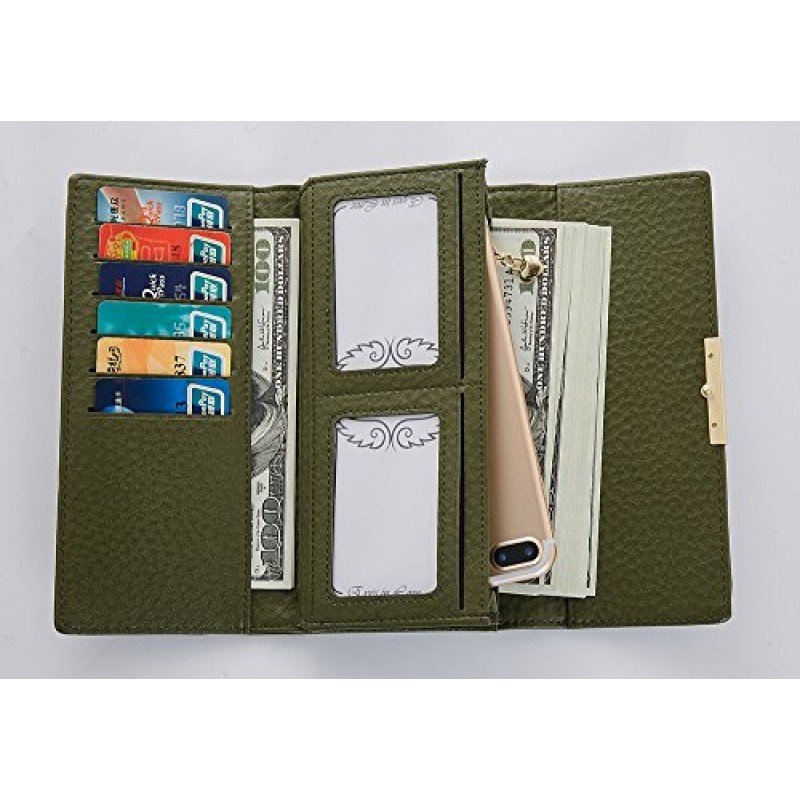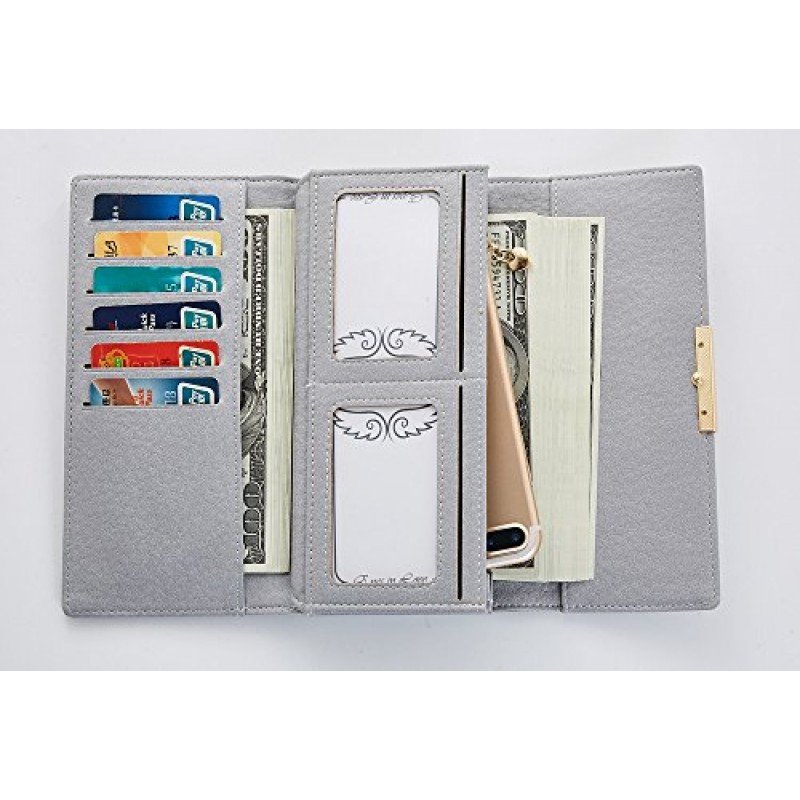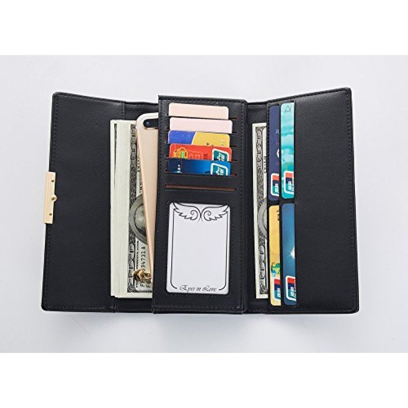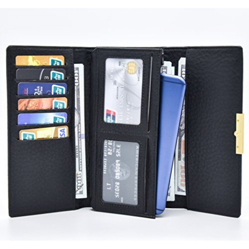 - INTERNAL DESIGN: 9 card slots, 1 ID slot, 2 cash pockets (perfect fit for iphone8), 1 zipper pocket, 1 check pocket.