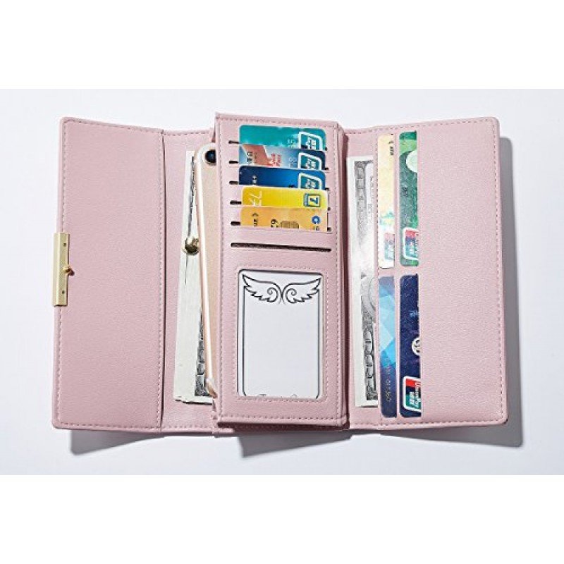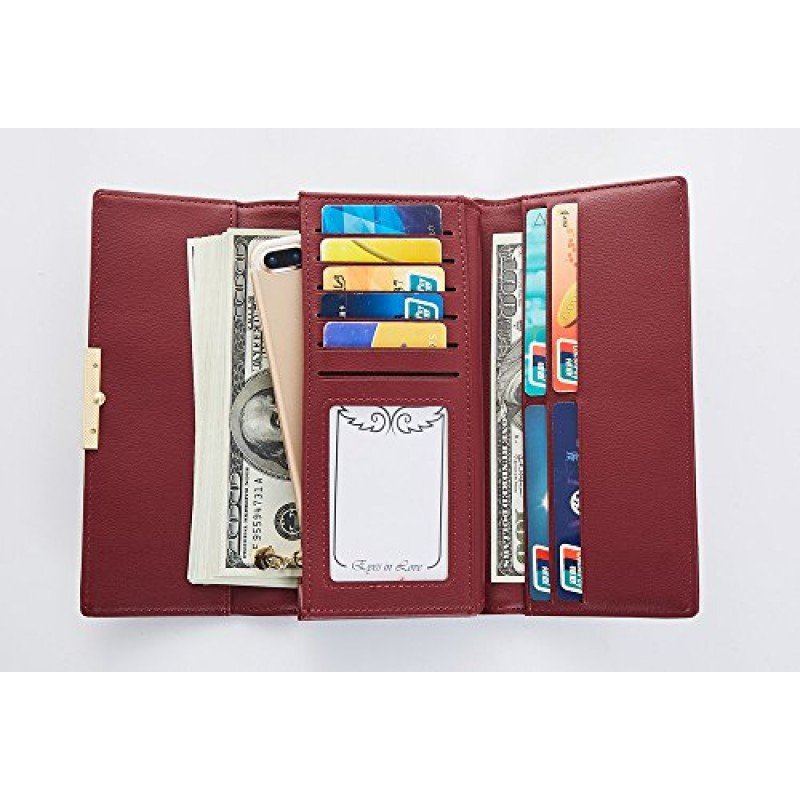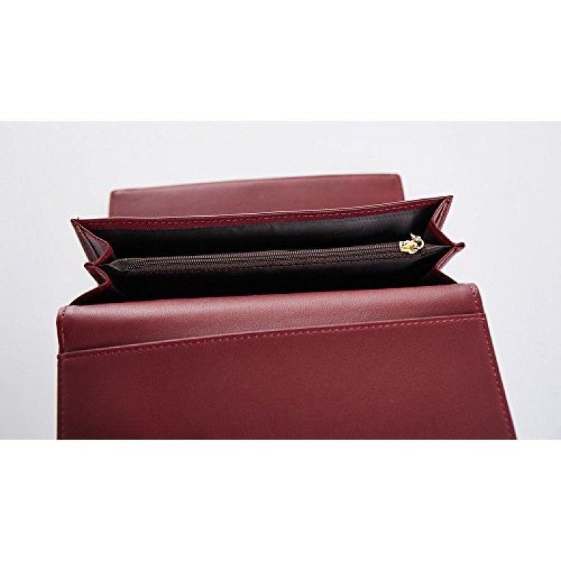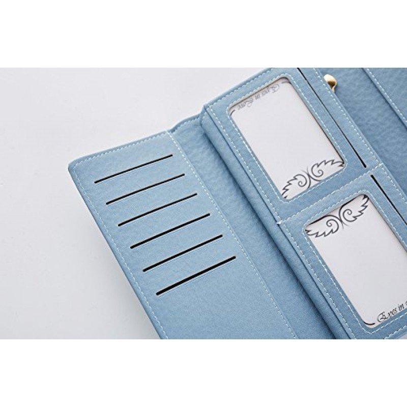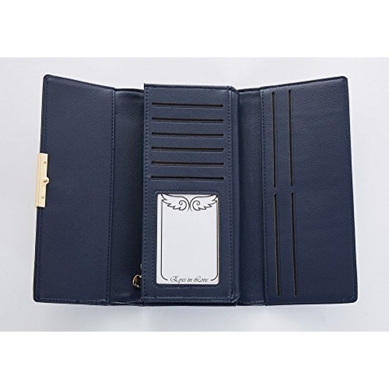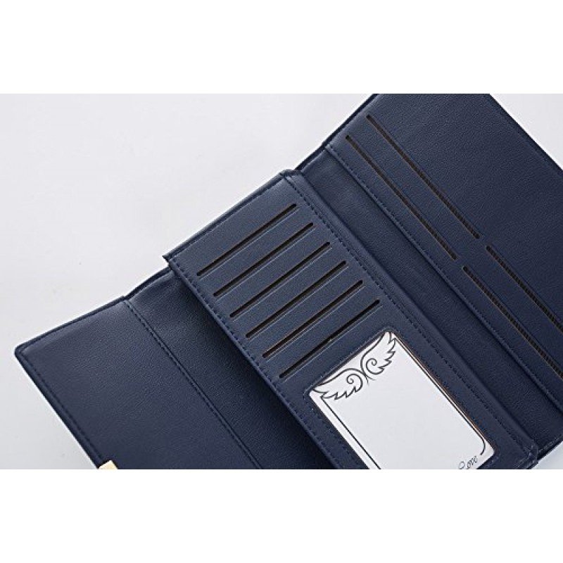 Cyanb Soft Leather Trifold Multi Card Holder Wallet, Elegant Clutch Long Purse for Women Ladies