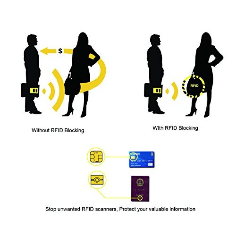 - RFID PROTECTOR:=== The RFID Protection Design can perfectly block unwanted RFID scanners. The included RFID blocking technology can prevent unauthorized access to personal information.