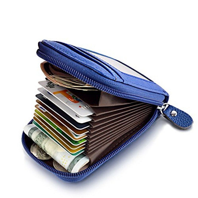 Zipper Credit Card Wallet Leather, MaxGear Genuine Leather Wallets RFID Credit Card Holder Small Wallet