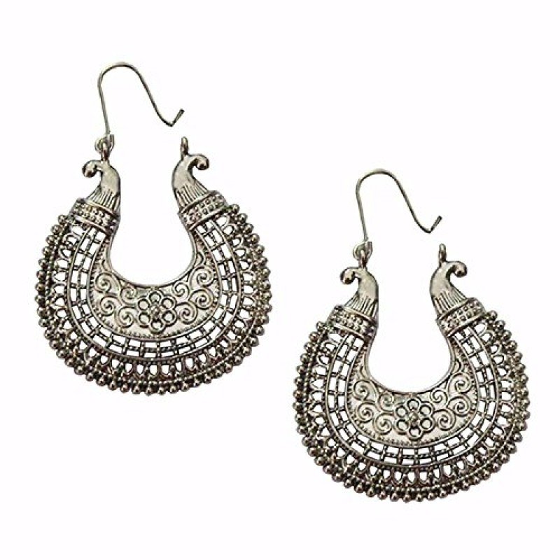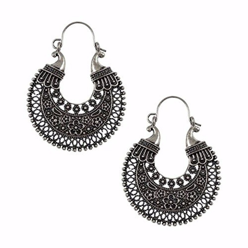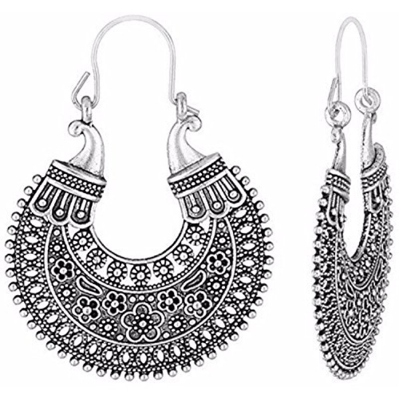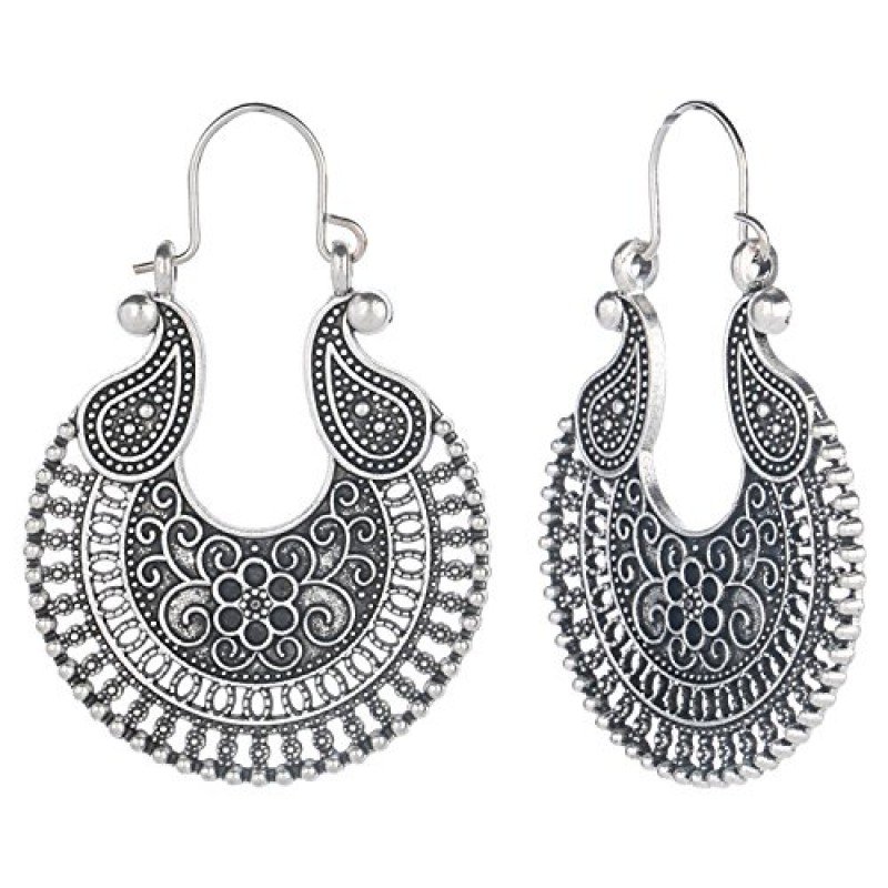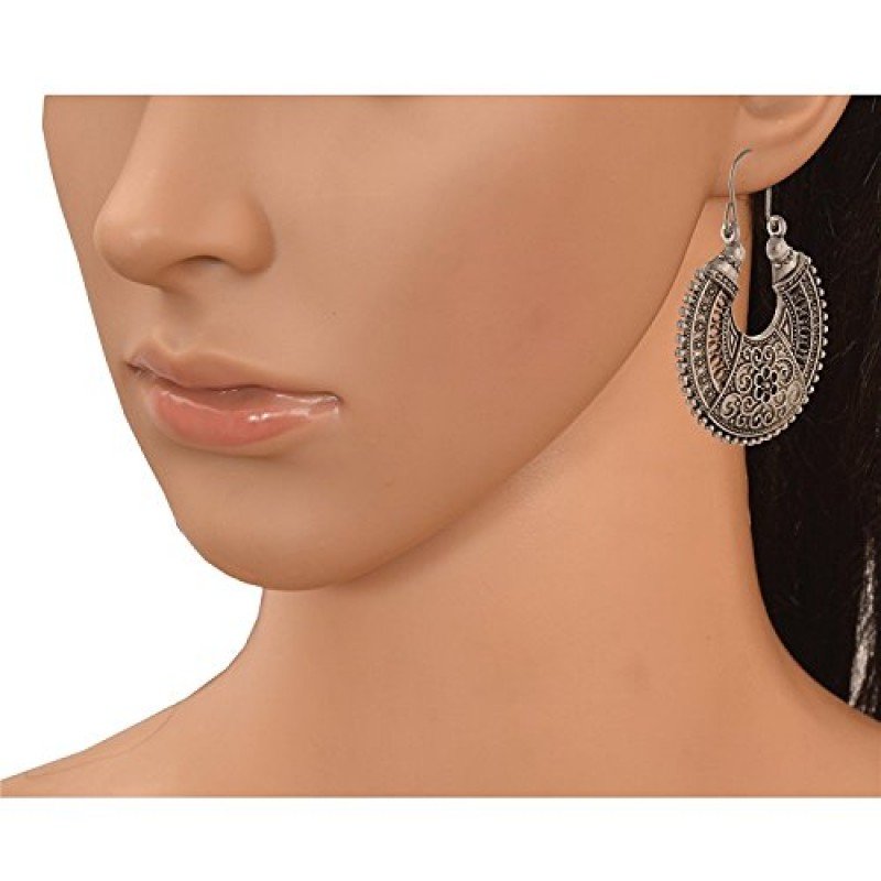 • Color- Oxidized silver, Base Metal-Alloy (Non Precious), Plating- Silver tone, Length x Width-4cm x 4cm, Back Lock- Hoop type. Fashionable, Stylish and Trendy Light Weight Delicate and Elegant Charming Bohemia Retro Design Earrings with high quality plating for long lasting finish. Offers great values at affordable prices, luxury apperance. Skin Friendly, Hypo allergic, environmental friendly