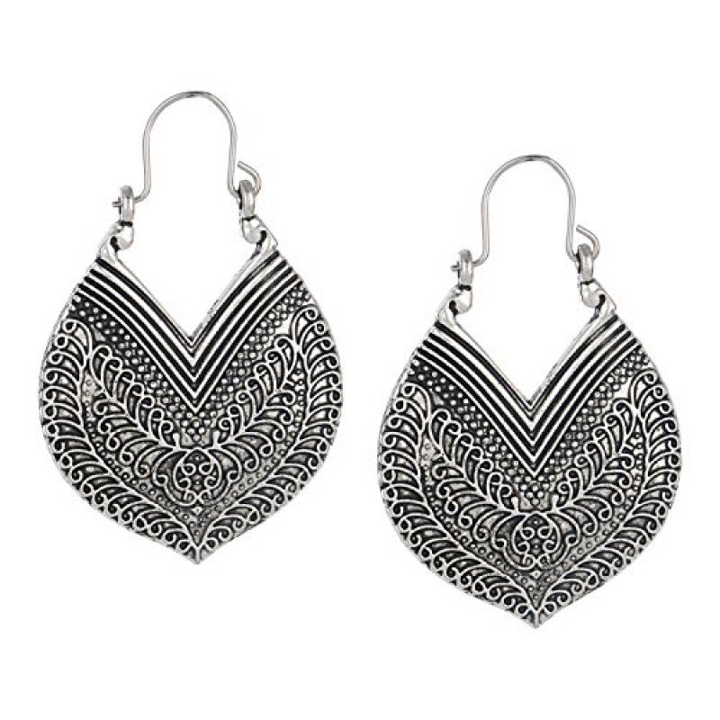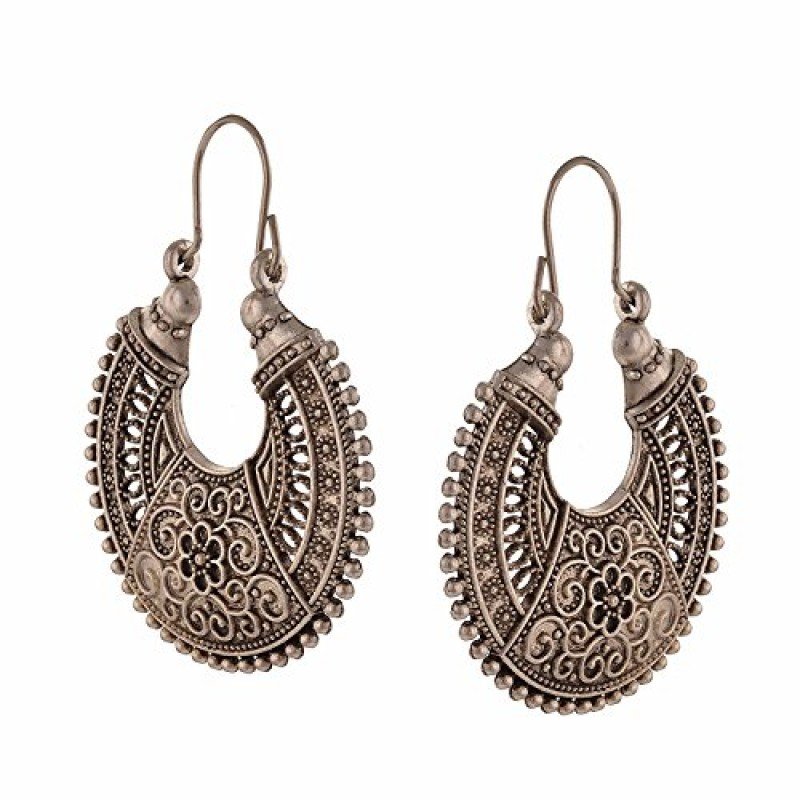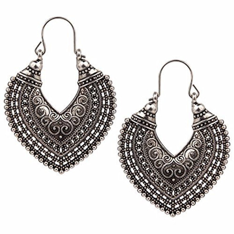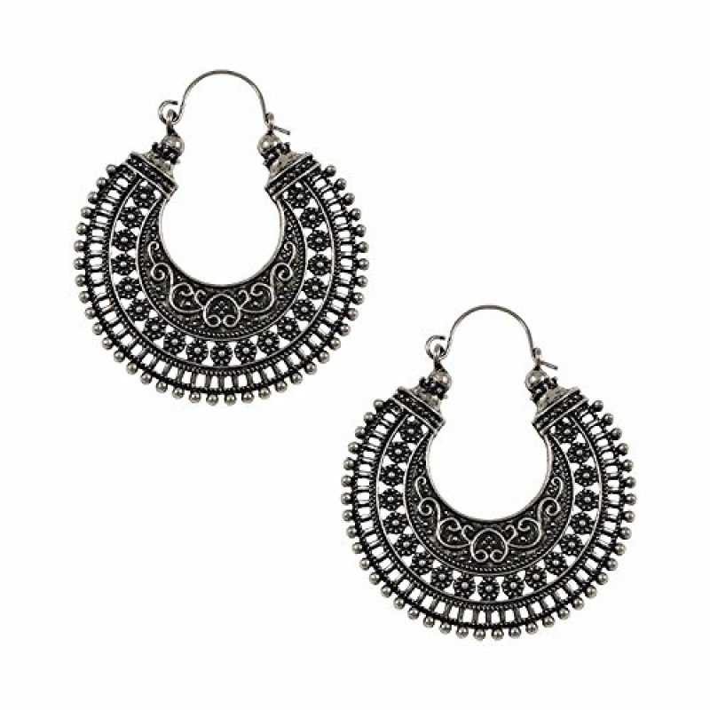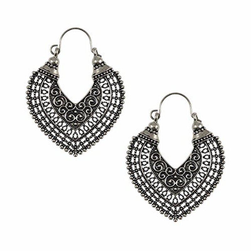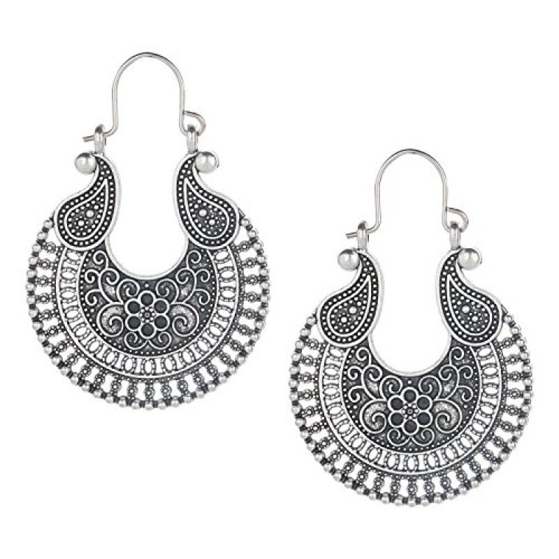 Efulgenz Oxidized Silver Hoops Boho Vintage Retro Tribal Tibetan Gypsy Dangle Indian Bollywood Ethnic Earrings Love Gift