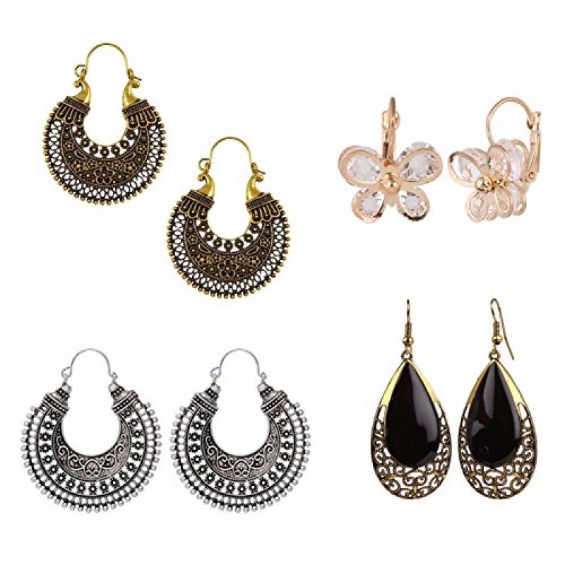 Tags: Efulgenz Oxidized Silver Hoops Boho Vintage Retro Tribal Tibetan Gypsy Dangle Indian Bollywood Ethnic Earrings Love Gift (Combo 1), Jaipur Art Jewellery, IER206_Style