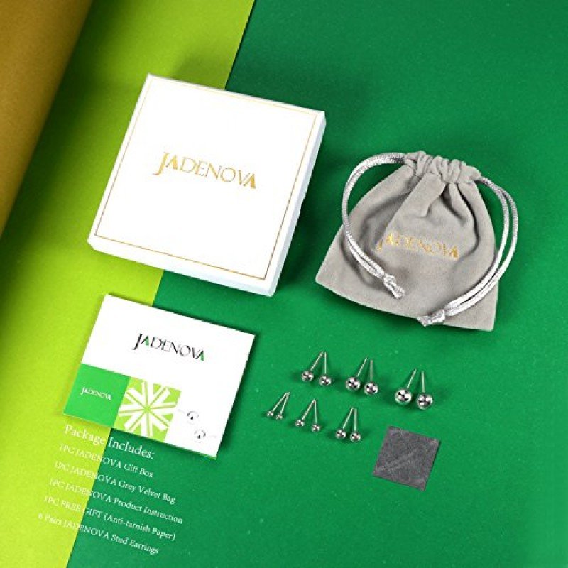 SPECIAL VALUE PACK: Comes with 6 Pairs 925 sterling silver ball earrings (1 pair/size) packed in a gray velvet pouch and JADENOVA Gift Box + 1PC FREE GIFT--anti-tarnish paper, this neutral but novelty packaging making the ball earrings wonderful gifts for him/her on any special day. Surely, the earring studs is also a beautiful piece to compliment oneself.