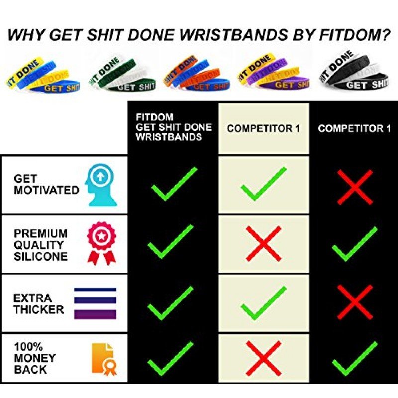 - ? BE BOLD -Two high quality 3mm extra thick silicone wristbands with embossed "GET SHIT DONE" phrase. Tough enough to withstand all wear & tear and easy to wear for everyday activities.