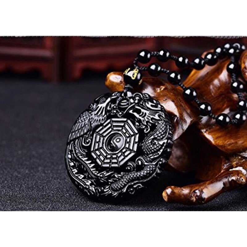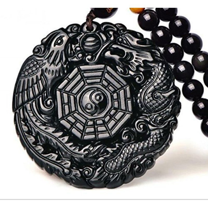 c1lint7785631 Natural Obsidian Dragon Phoenix the Eight Trigrams Pendant Amulet Peace Mascot