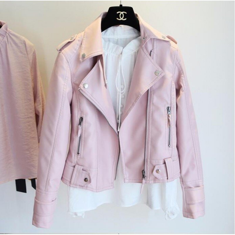 Leather Jacket 2018 Women's New Year Design PU Leather Jacket Soft Leather Coat Slim Lapel Motorcycle Jacket Black Pink