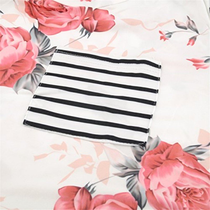 - Features: Floral Print perfectly with the Stripe detail on sleeves and pocket; Stripes and Floral mingle together to create this beautiful top that is a must have for your wardrobe!