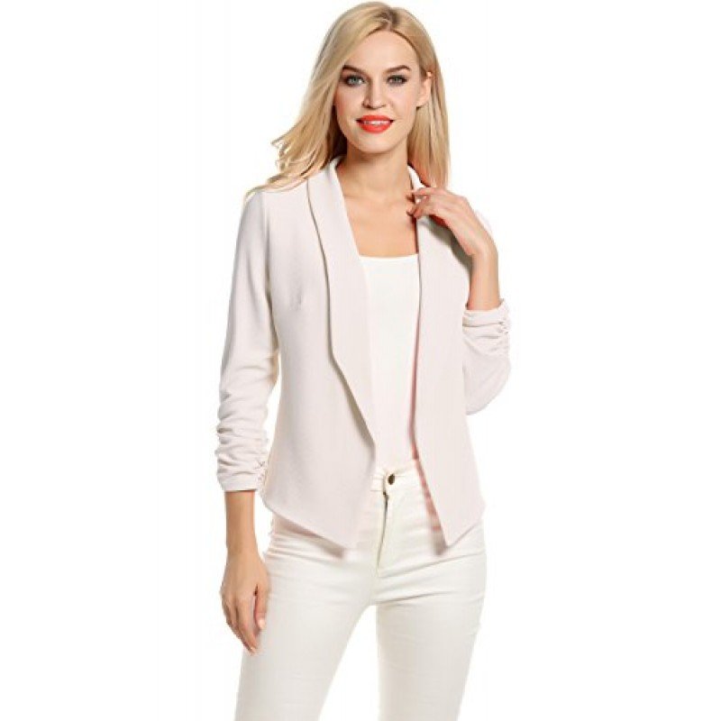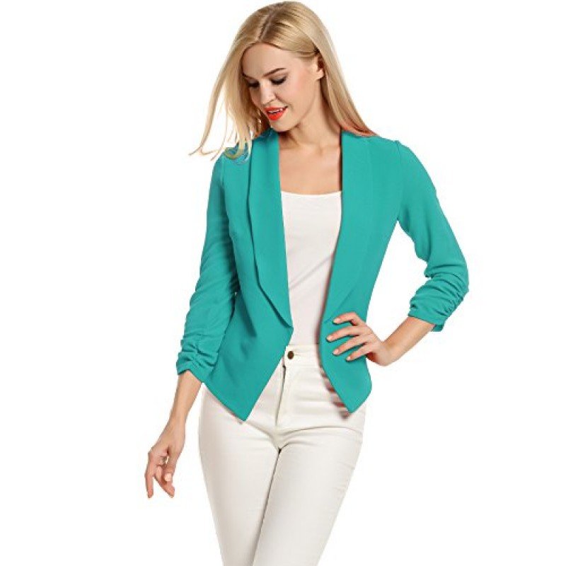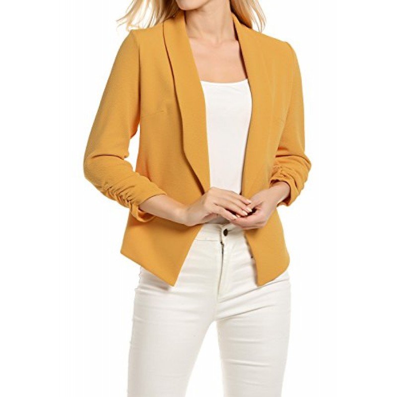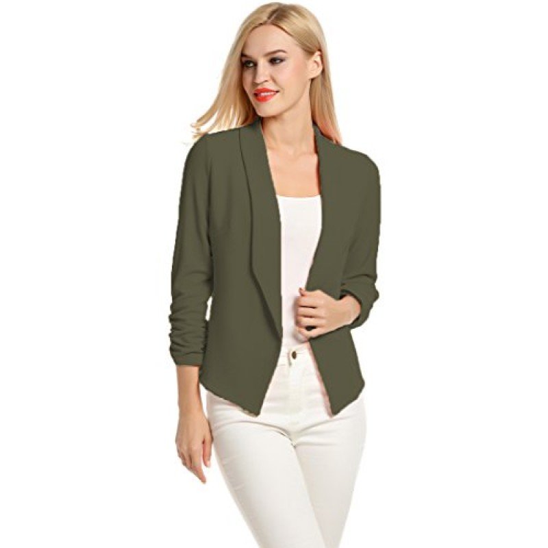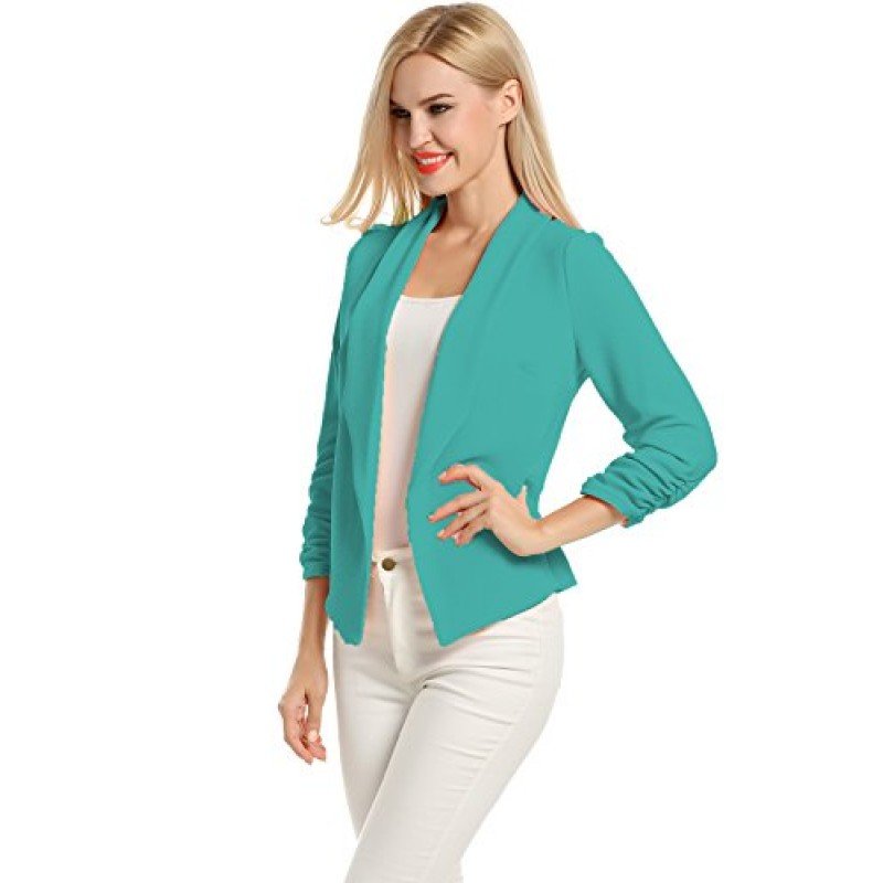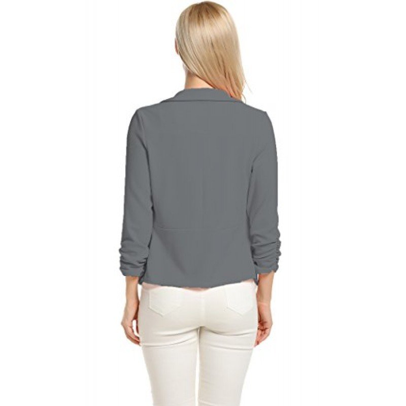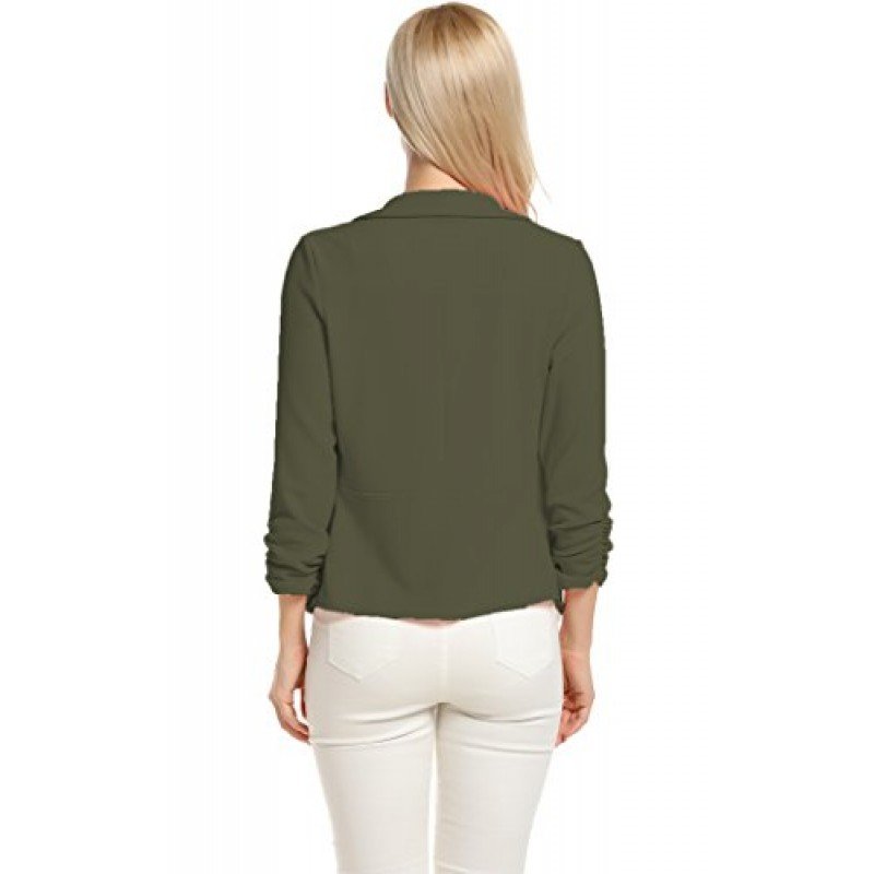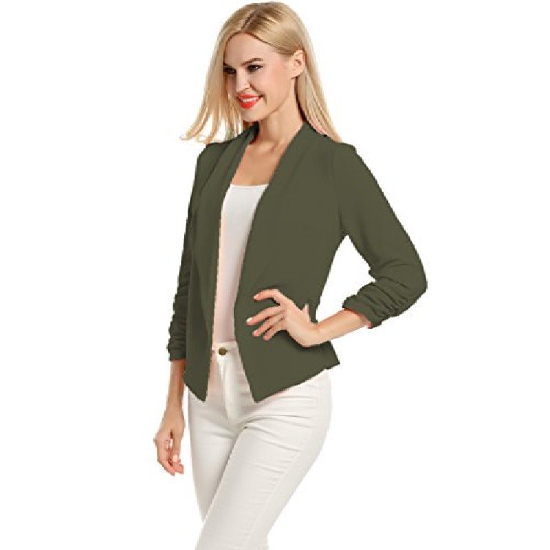 • 3/4 length Ruched sleeves Open Front Blazer
