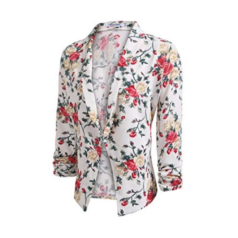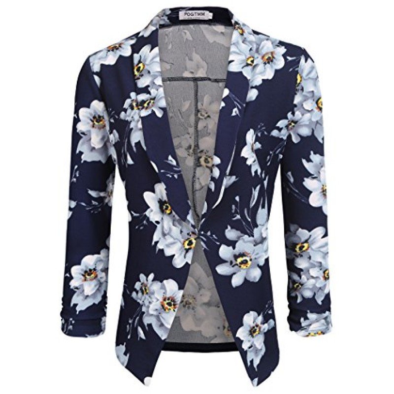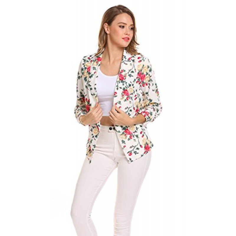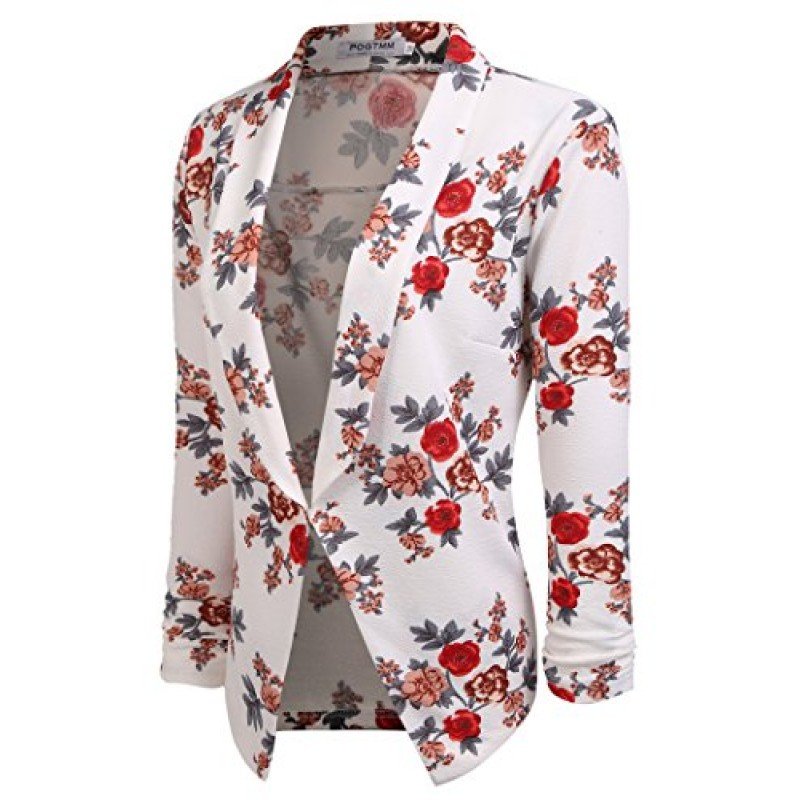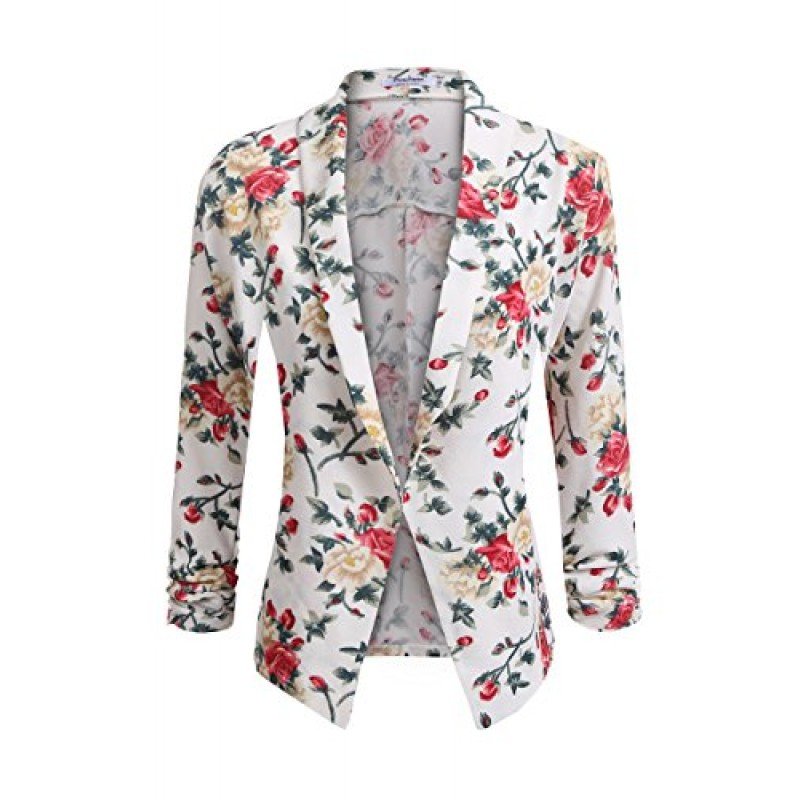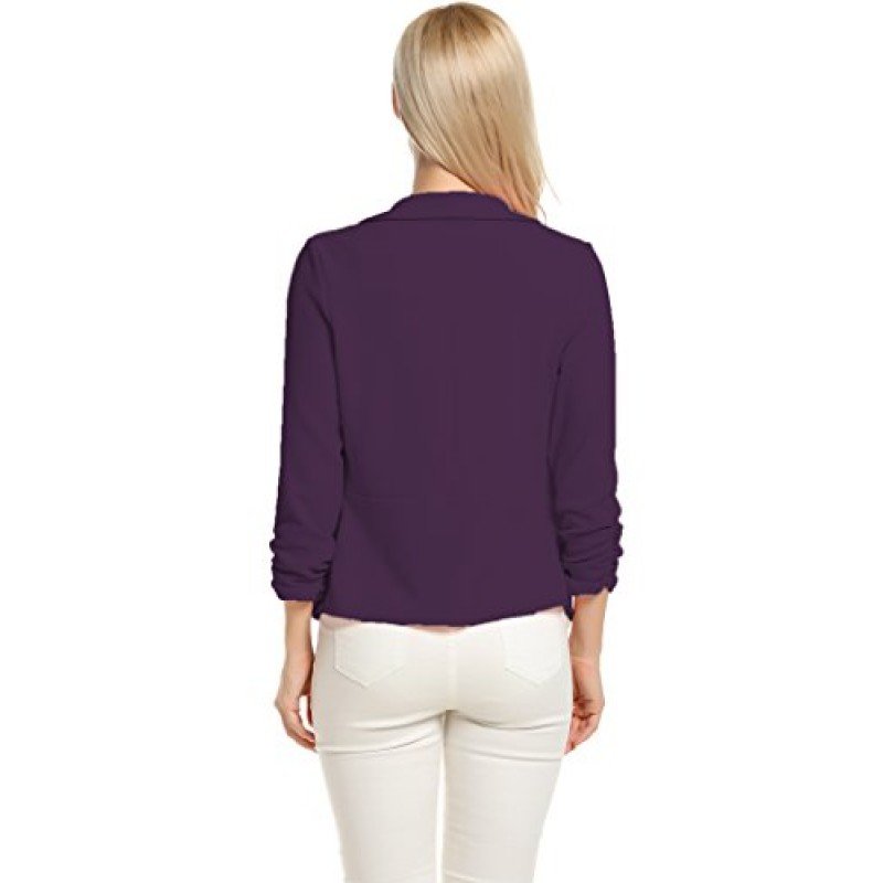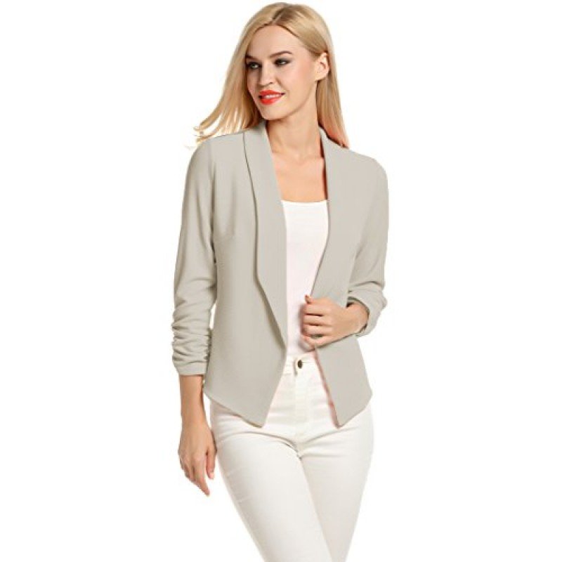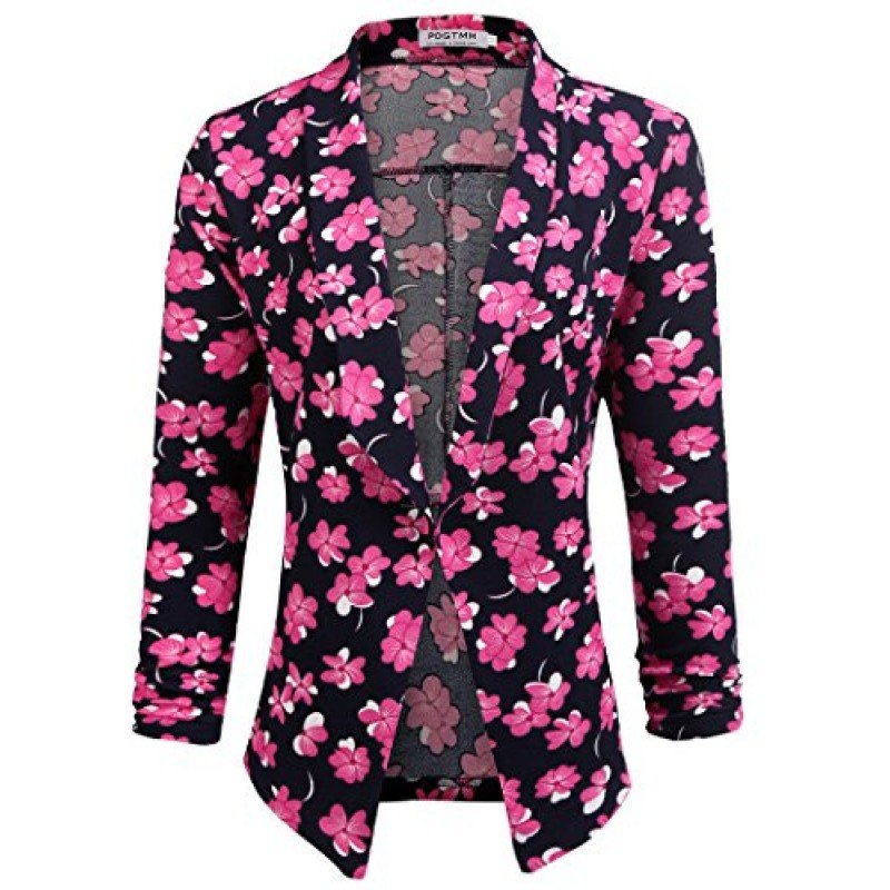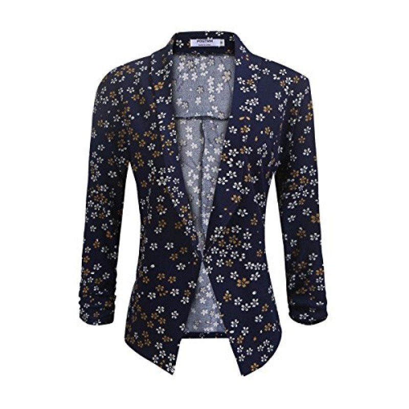 POGT Women 3/4 Sleeve Blazer Open Front Cardigan Jacket Work Office Blazer