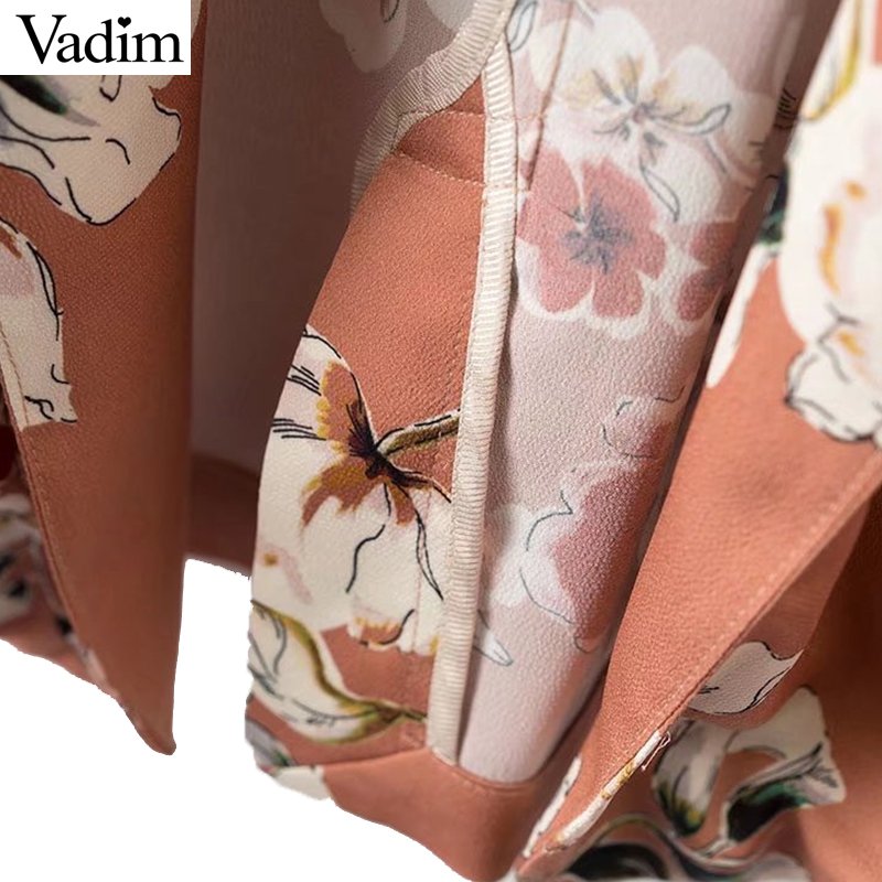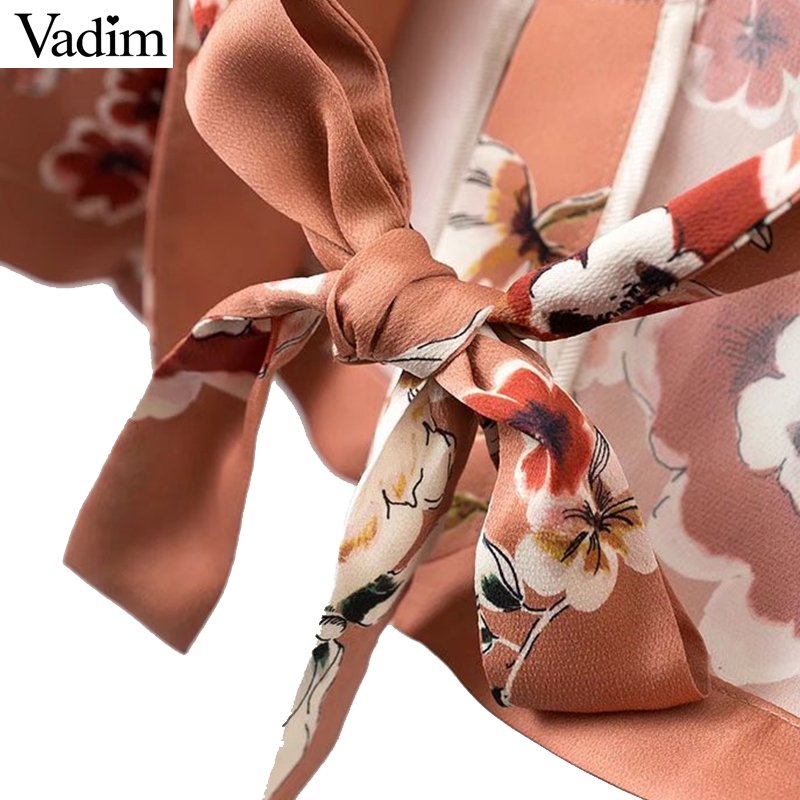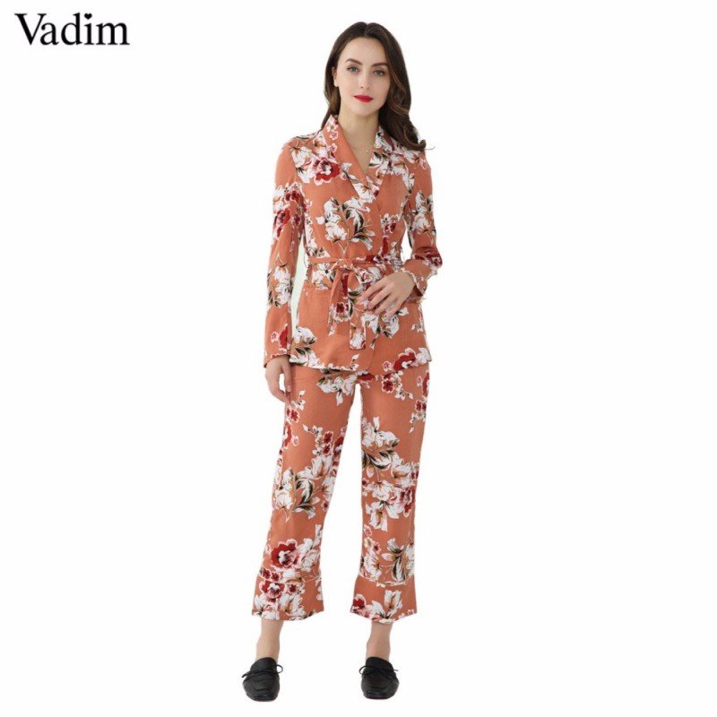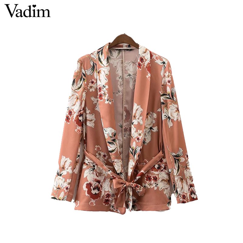 Vadim women vintage floral print blazer Notched collar sashes long sleeve coat casual outerwear casaco feminine tops CT1452