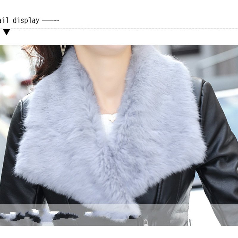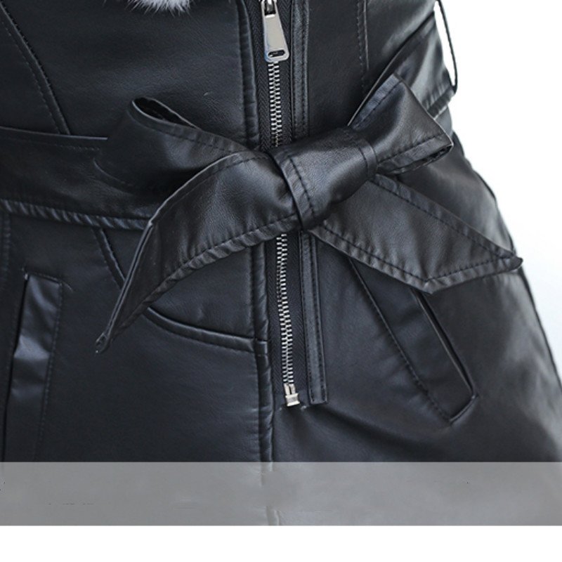 Mikialong 2017 Fur Collar Women Long Leather Jacket Coat Female Winter Long Sleeve Suede Fur Jacket Women Bow Motorcycle Jacket