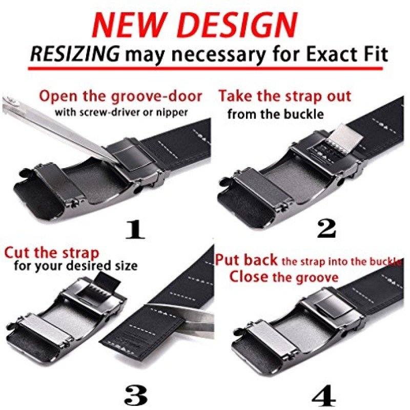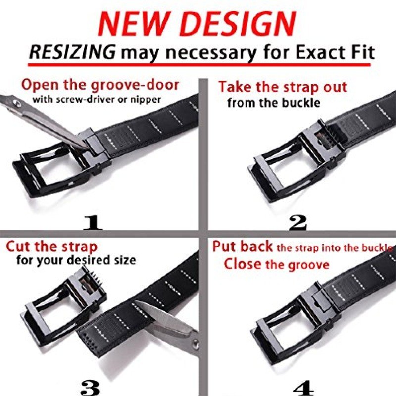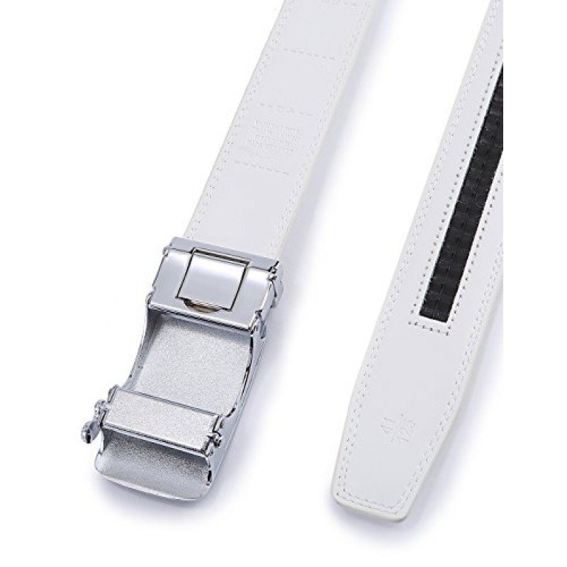 - GIFT IDEA: This fashion buckle is well designed to match with the elegant strap, and an attractive paper gift box is available to give the belt additional decoration. it must be a good gift for you to present to your family or friends, even if you are not sure of the waist, just take a bigger one and it can trim to fit easily later on.