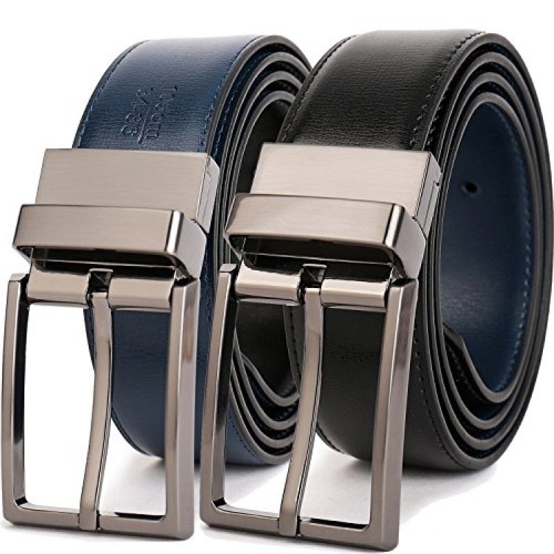 Beltox Fine Men's Dress Belt Leather Reversible 1.25" Wide Rotated Buckle Gift Box