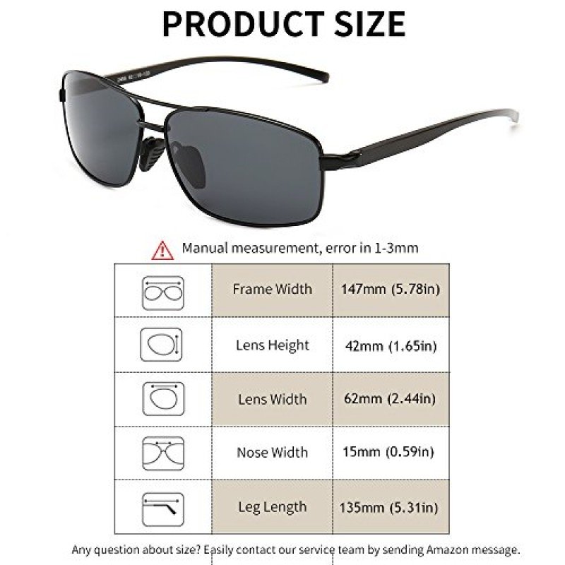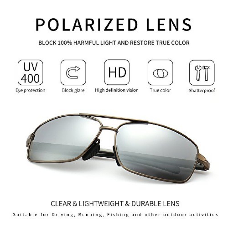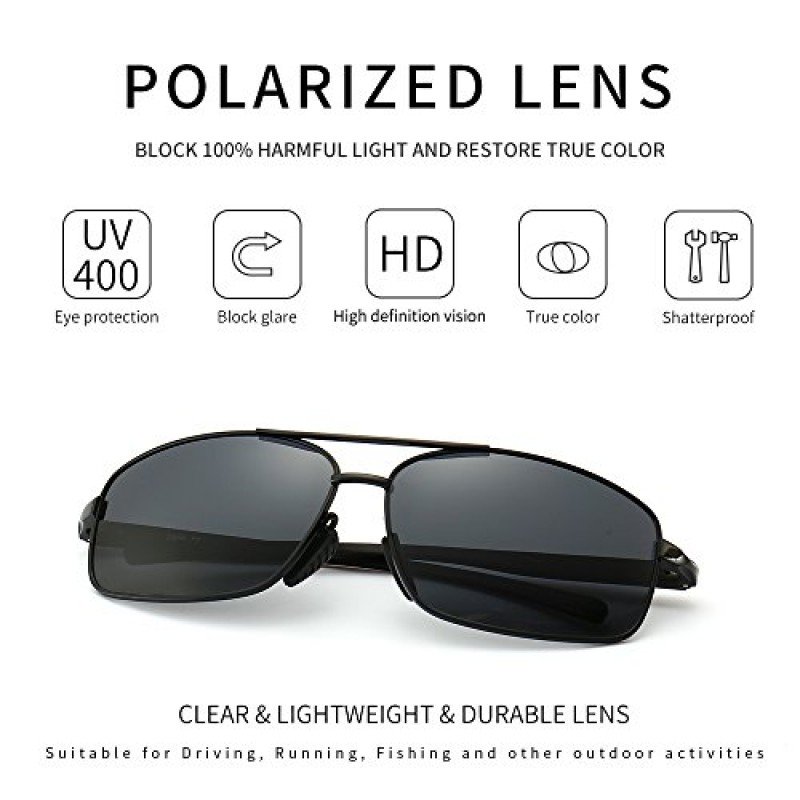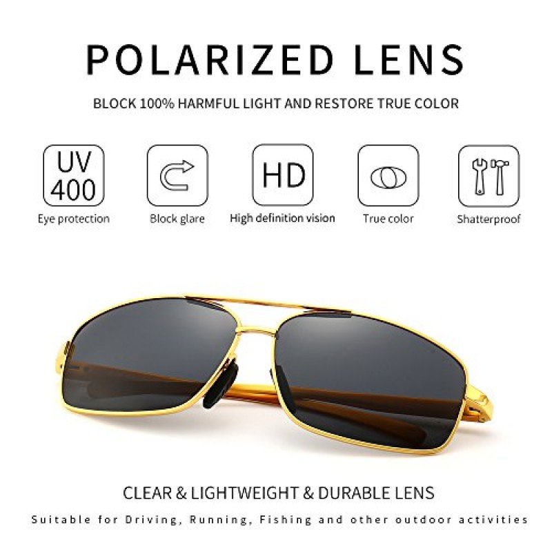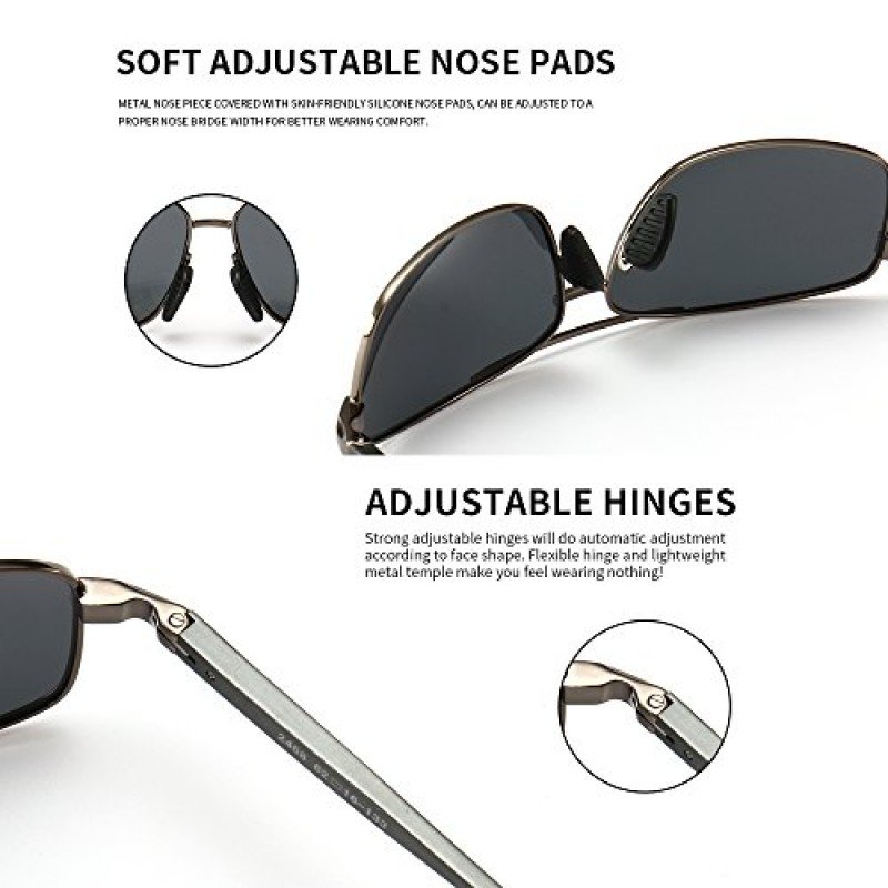 ⢠Lightweight Frame: The frame is made of Al-Mg Alloy metal which are lightweight and strong. They are ideal driving sunglasses and running sunglasses.