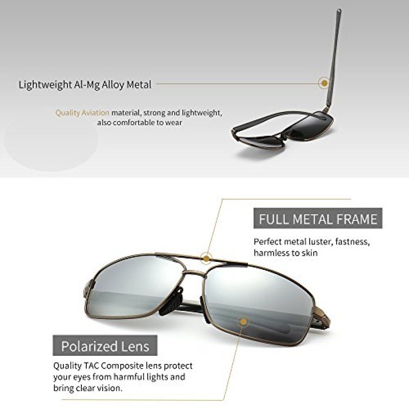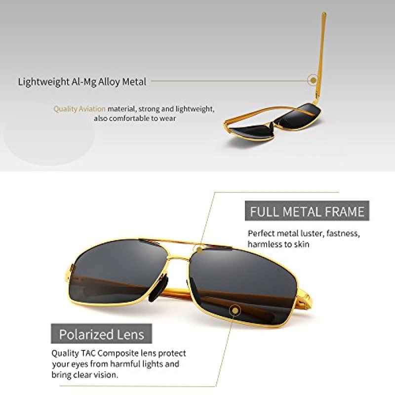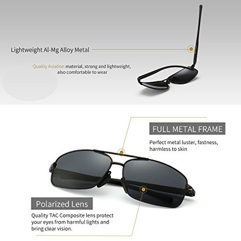 - Fashion Metal Frame - Lightweight and Strong rectangular polarized sunglasses