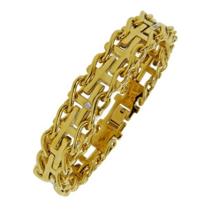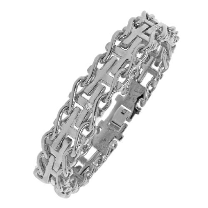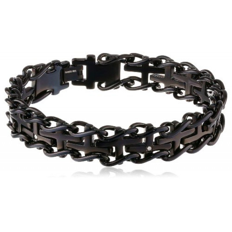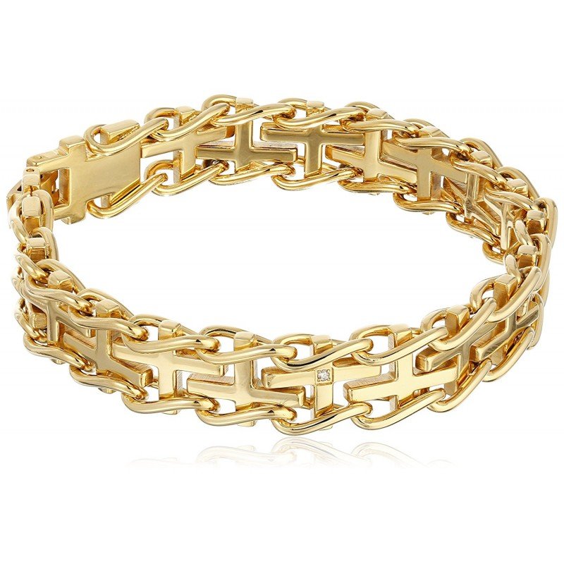 Men's Stainless Steel Railroad with .03 cttw Diamonds IP Cross Bracelet
