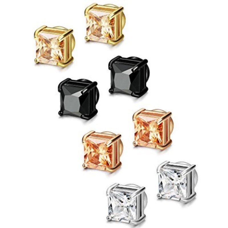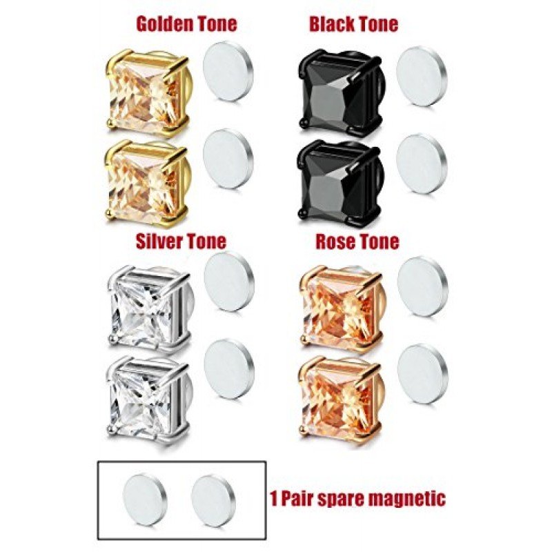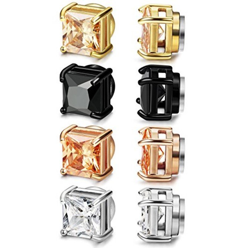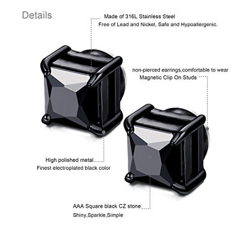 - SPECIAL DESIGN:With magnetic button to secure the earring,no piercing pin as ordinary earring.Suitable for people with or without piercing hole.Square CZ earring is perfect accessories both for men and women.