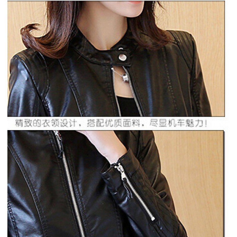 Women Leather Jacket Single Pimkie Washed PU Leather Motorcycle Jacket PIMKIE Jacket Slim Female Soft Leather Large black pink