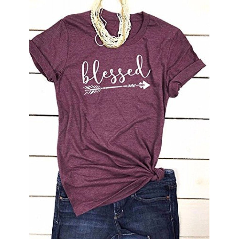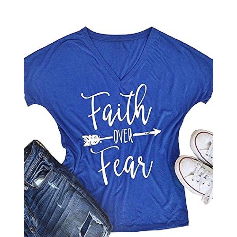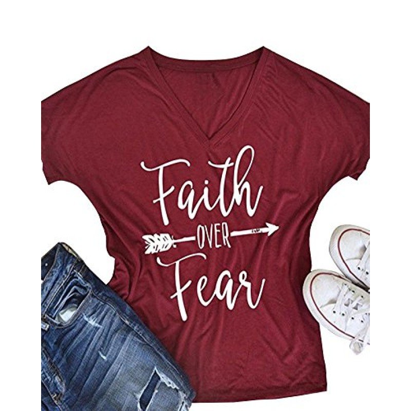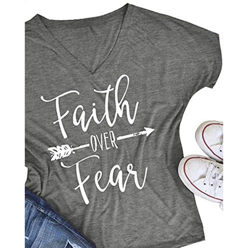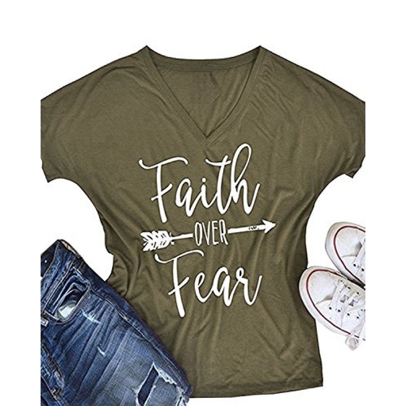 Pxmoda Women's Casual Letters Printed T-Shirt Short Sleeves Faith Over Fear Arrow Tee Tops