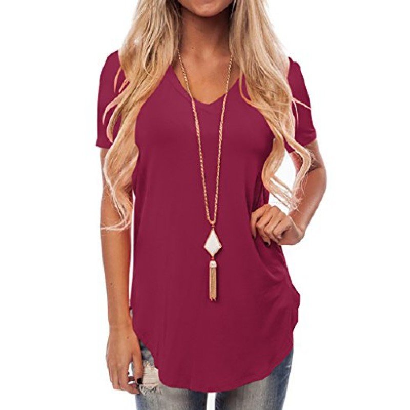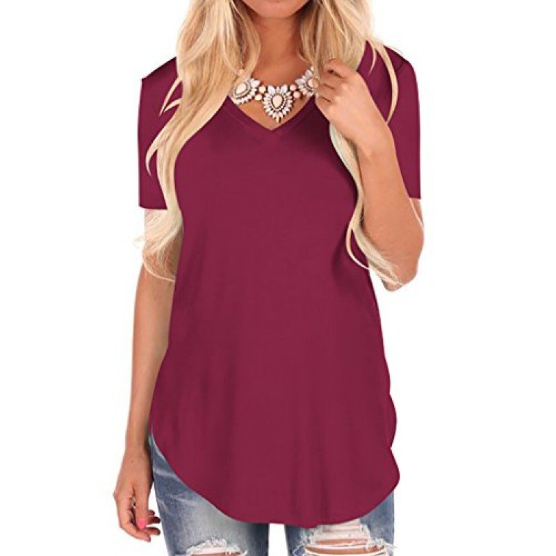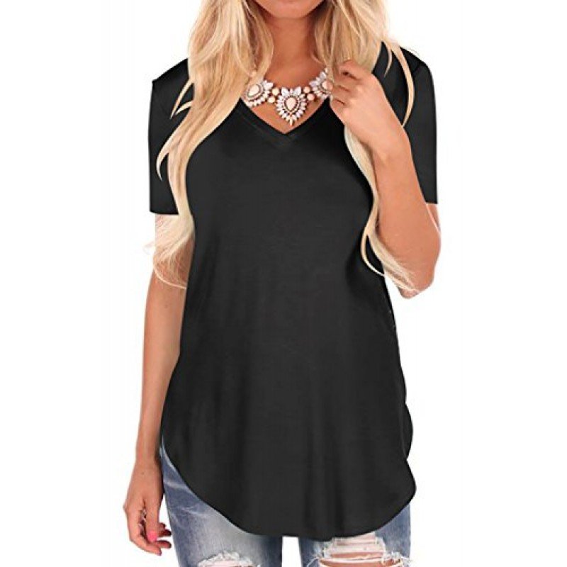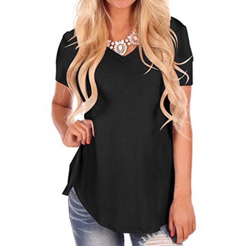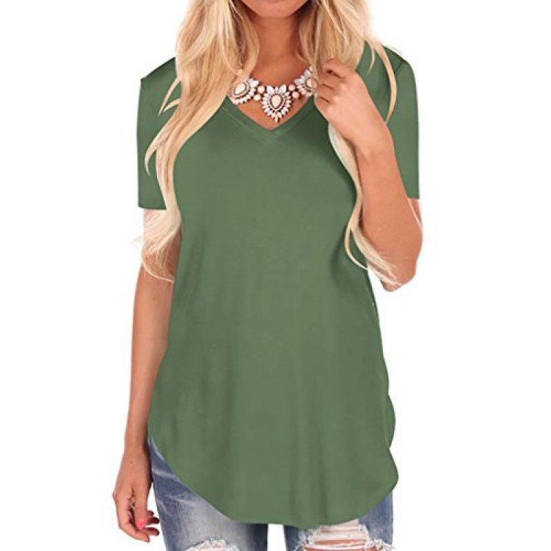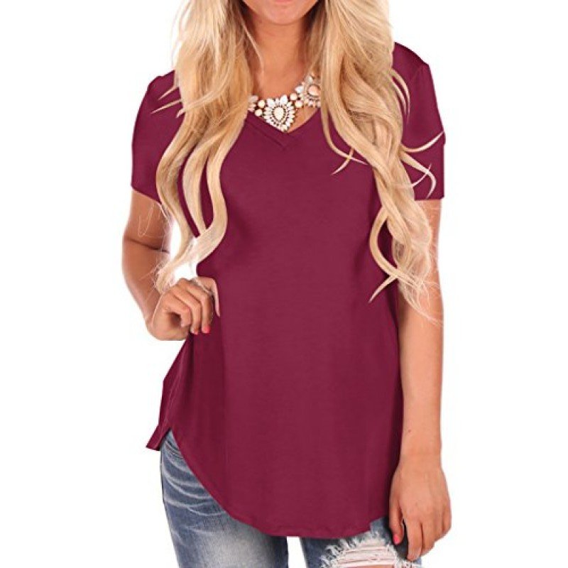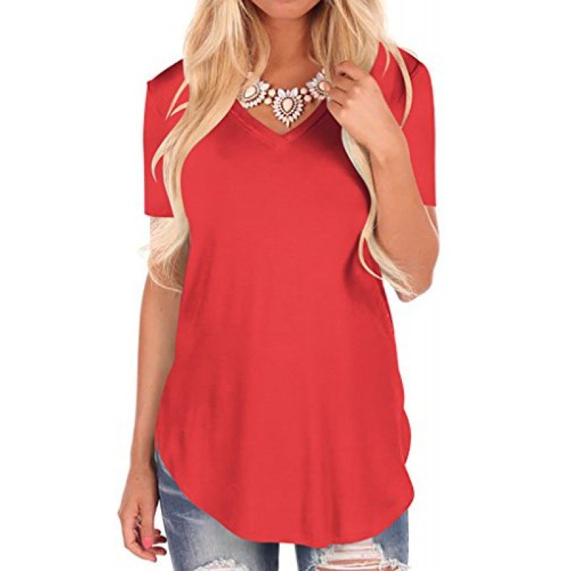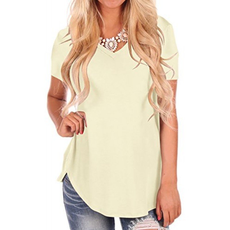 NIASHOT Women's Short Sleeve V-Neck Loose Casual Tee T-Shirt Tops