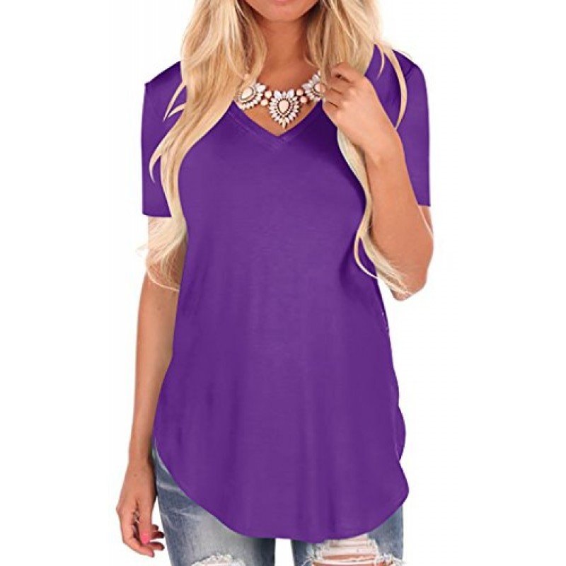 Niashot Women's Short Sleeve V-neck Loose Casual Tee T-Shirt Tops Size S-2XL