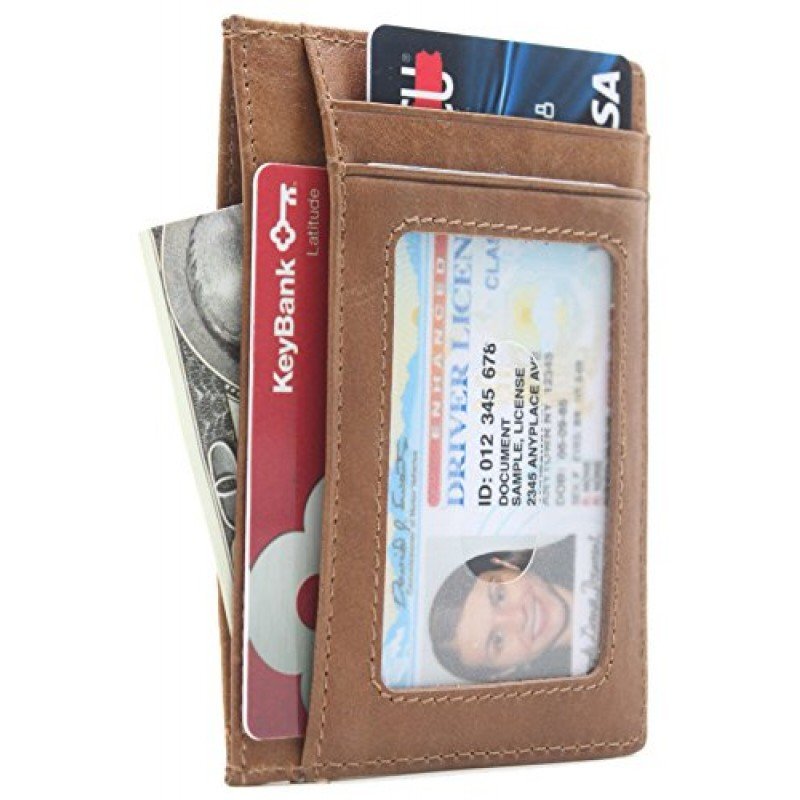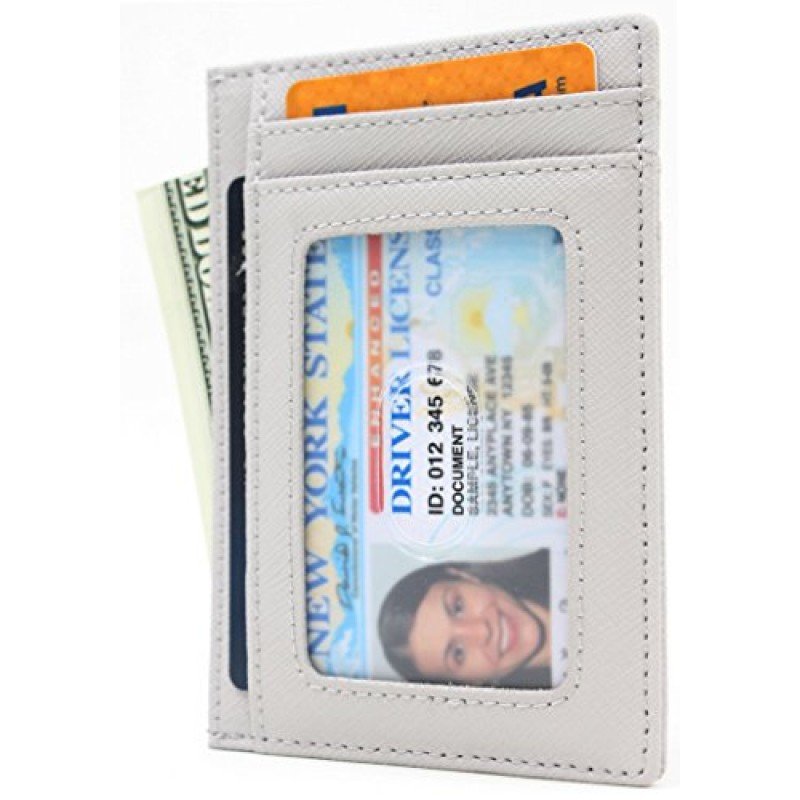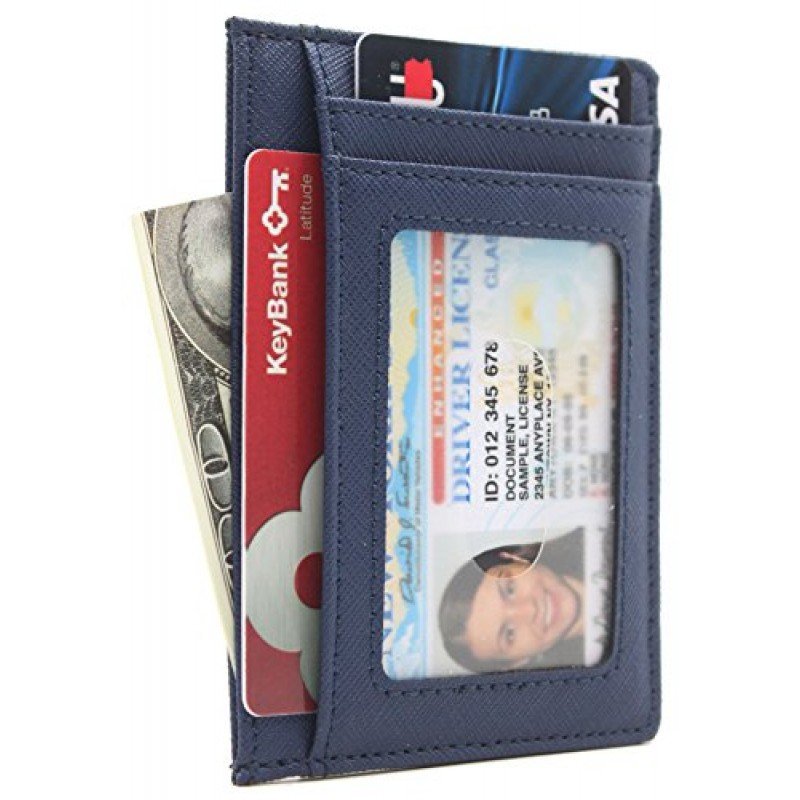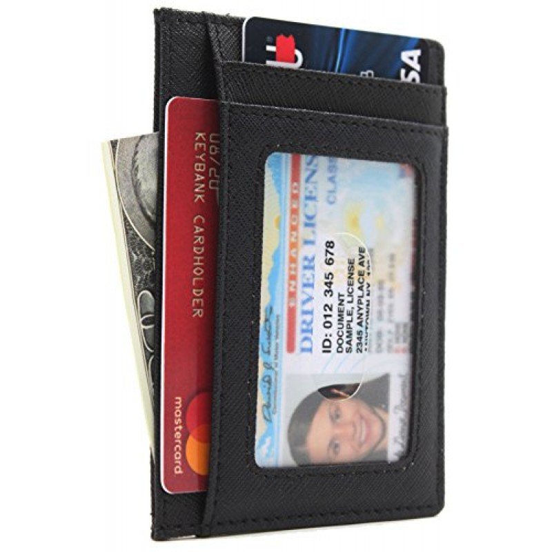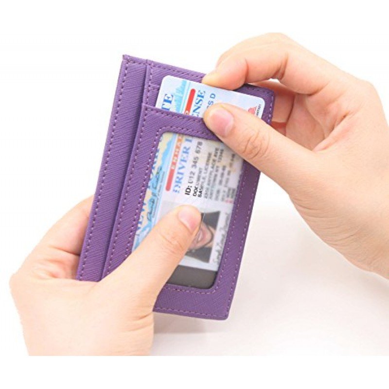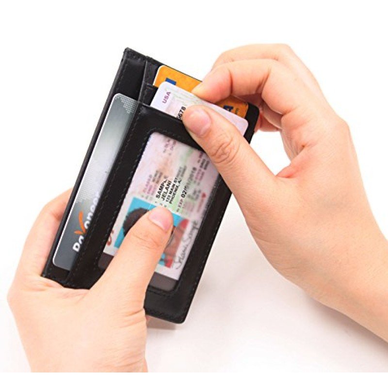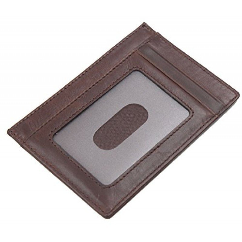 100 % Leather. Easily store and organize all your cards. Ideal for credit cards, ID, and more. Includes three slot for credit cards or loyalty cards plus one slot with a clear window ideal for your ID Slim design makes it easy to slip the holder inside your pocket or bag