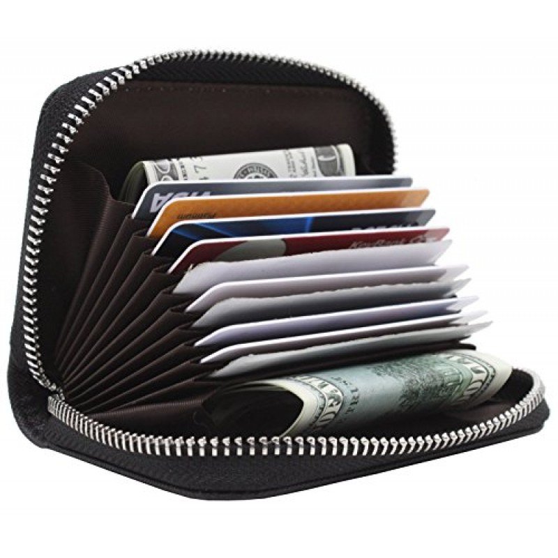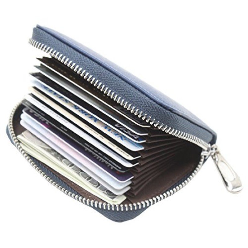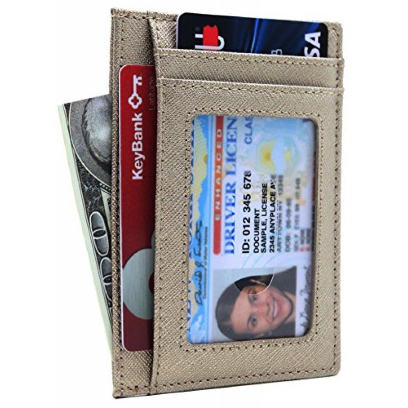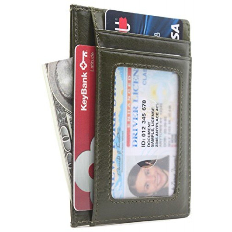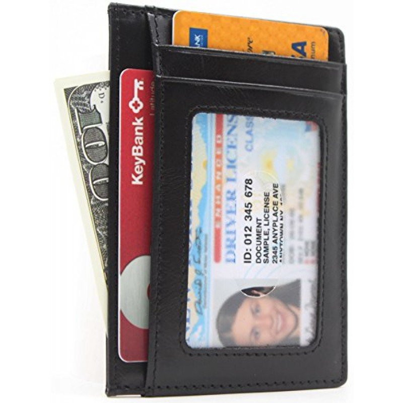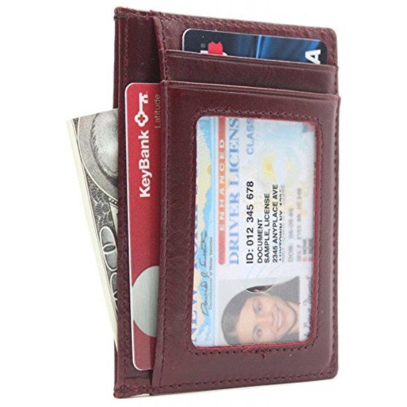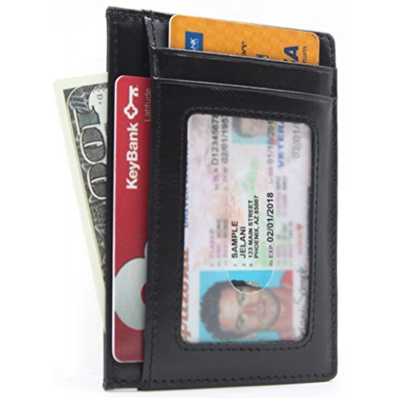 100 % Leather. Easily store and organize all your cards. Ideal for credit cards, ID, and more. Includes three slot for credit cards or loyalty cards plus one slot with a clear window ideal for your ID Slim design makes it easy to slip the holder inside your pocket or bag