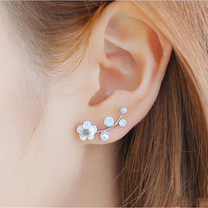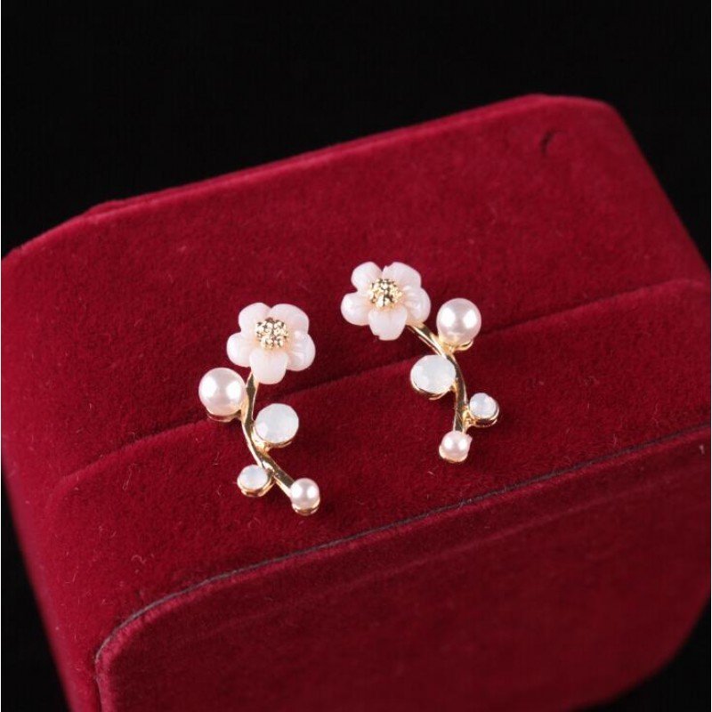 Shuangshuo 2017 New Fashion Crystal Earrings for Women Pearl Women Branch Shell Pearl Flower Stud Earrings Female